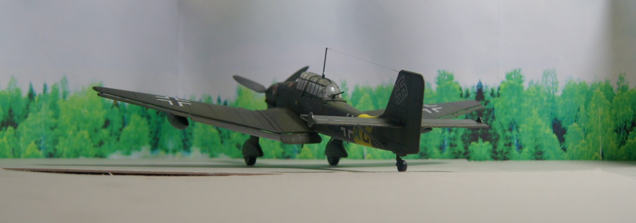 Модель выпуска 1981 года. Расшивка и клепка были внешними, пришлось полностью прорезать расшивку. Одна недоделка - выхлопные патрубки не окрашены в нужный цвет по причине отсутствия требуемой краски. Как появится - устраним. Интерьер кабины никакой. Модель брал с рук, кое-что уже было начато, в том числе и кабина, не стал переделывать. Элероны и закрылки разделены на соответствующие секции, установлены под разными углами. Лючки изготовлены из самоклеющейся фольги. Руль отрезан и установлен отдельно. Прицельные приспособления на пулемет изготовить самостоятельно не удалось, травление не брал. Крыльевые пулеметы и приемник воздушного давления из медицинской иглы. Дополнительных аксессуаров, как уже сказал, не использовал. Расшивка выделена АКАНовским пигментом. Антенна из волоса, окрашенного тем же пигментом. Красил все АКАНом (краски, лак).