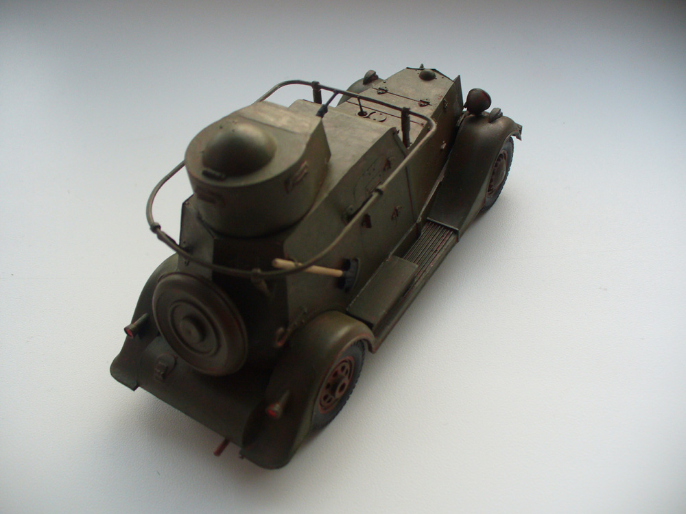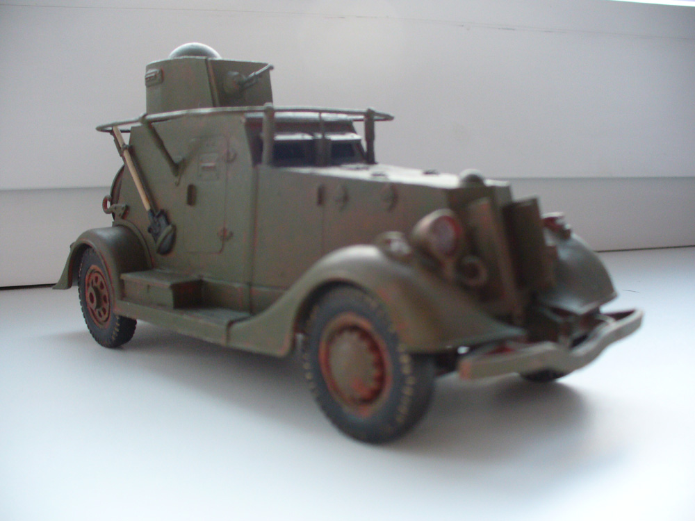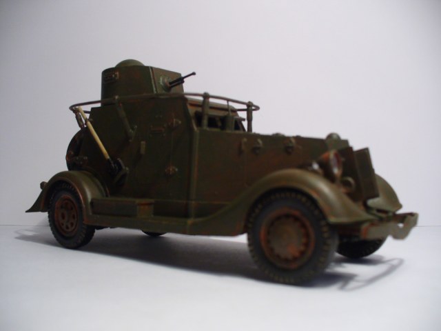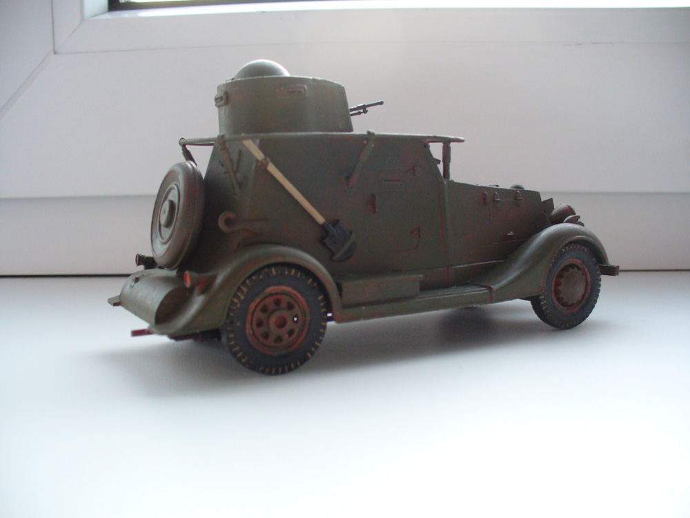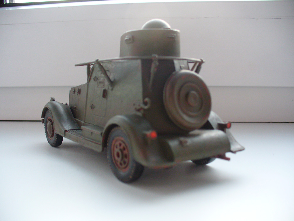 Теперь, самое главное - прежде чем собирать "игрушку", можно немного посмотреть материалы по этой бронемашине и по модели этого БА. Про задний броневой лист не писал только ленивый - он был полукруглым. Ржавчина на себя не похожа, это по оттенку похоже на красную глину. На самом деле техника так не ржавеет, не обольщайтесь.