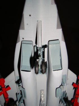 Про швы не зашпатлёванные Вы верно сказали. А мне как-то уже не бросилось в глаза после всех остальных моих замечаний. Если бы их не было-может и заметил бы. Фонарь, кстати, вроде, нормально посажен. Блоки отстрела ЛТЦ, кстати на своём месте. Они стыкуются вплотную с подкилевой надстройкой.