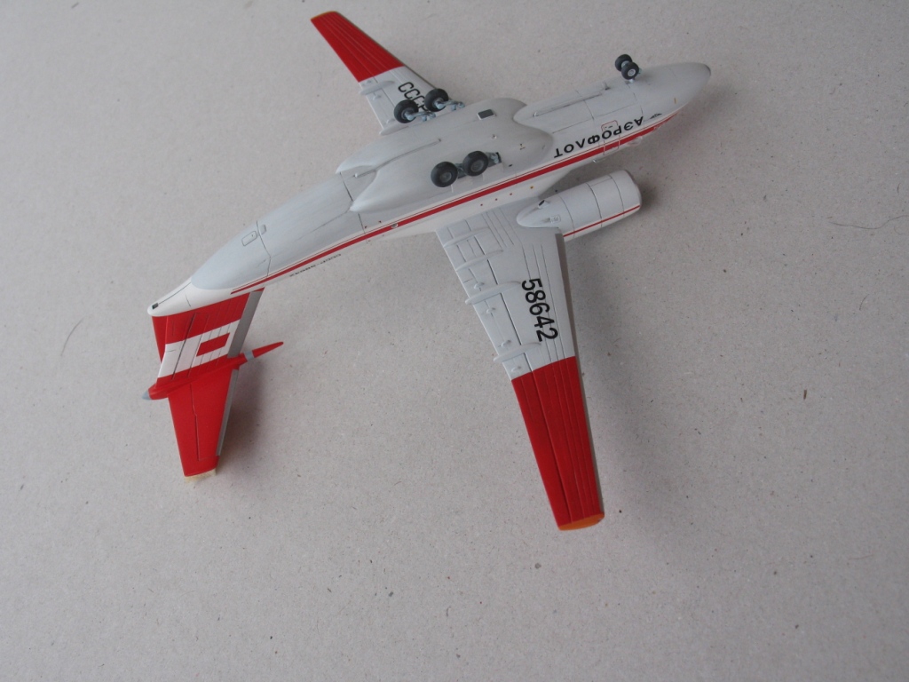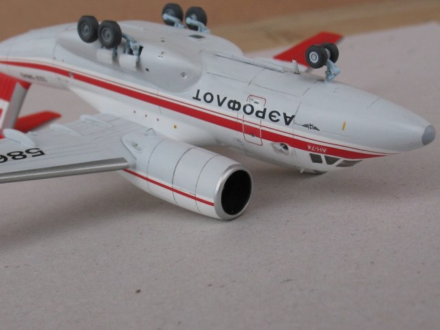 На общих планах выглядит шикарно. Крупные немного разочаровывают - на мой субъективный взгляд, тонировка подчеркнула неоднородную, прерывающуюся расшивку, лучшеб вы не заливали. Шовчик мотогондол снизу на сопряжении с крылом удручает. Иллюминатор в задней двери напоминает бойницу, не заметно там стекла. Прошу извинить за придирки, но они стали возможны, только благодаря крупным планам модели, ну и не забываем, что это А-модел.