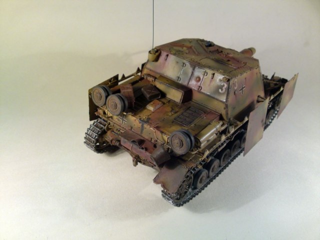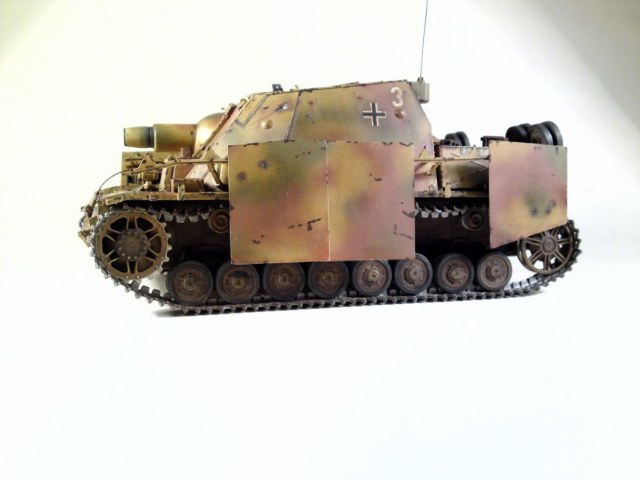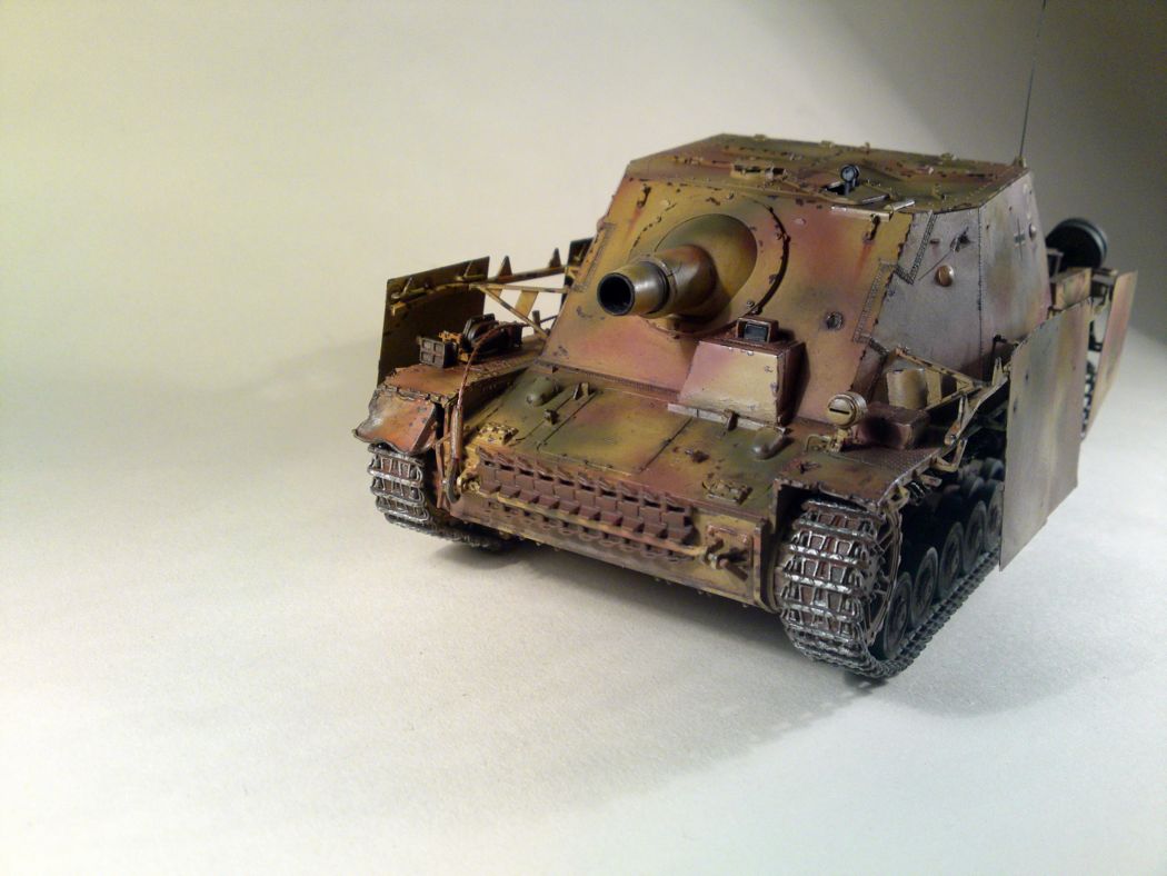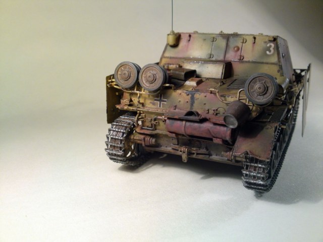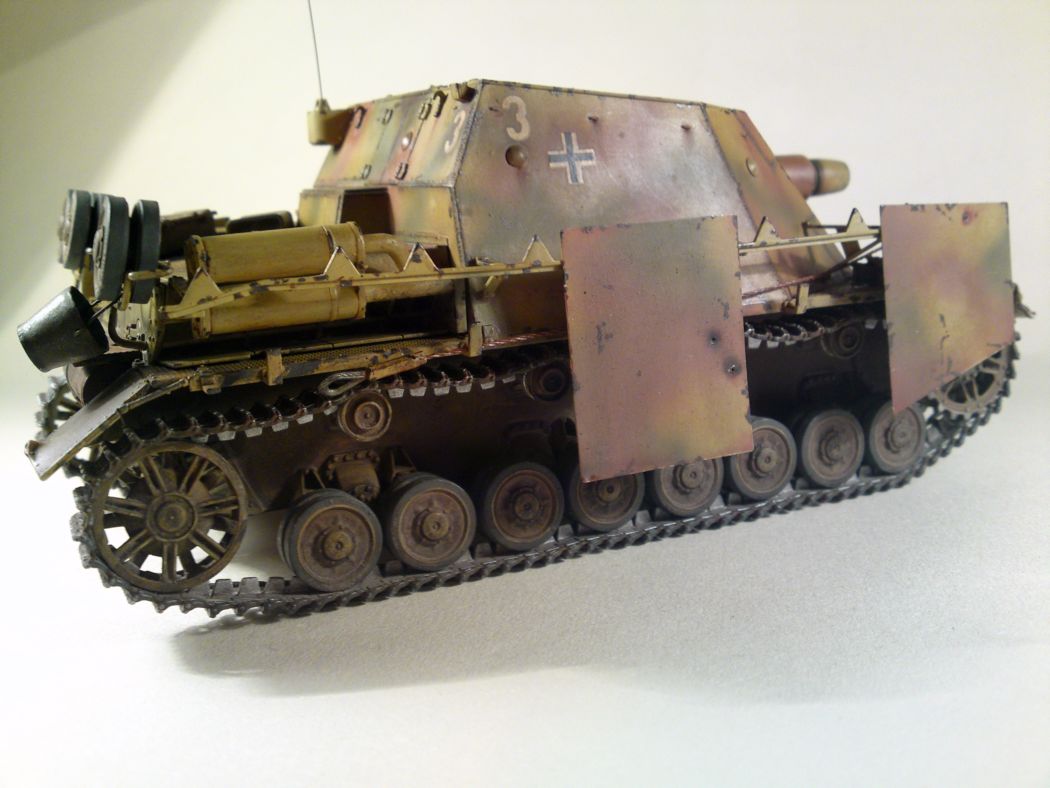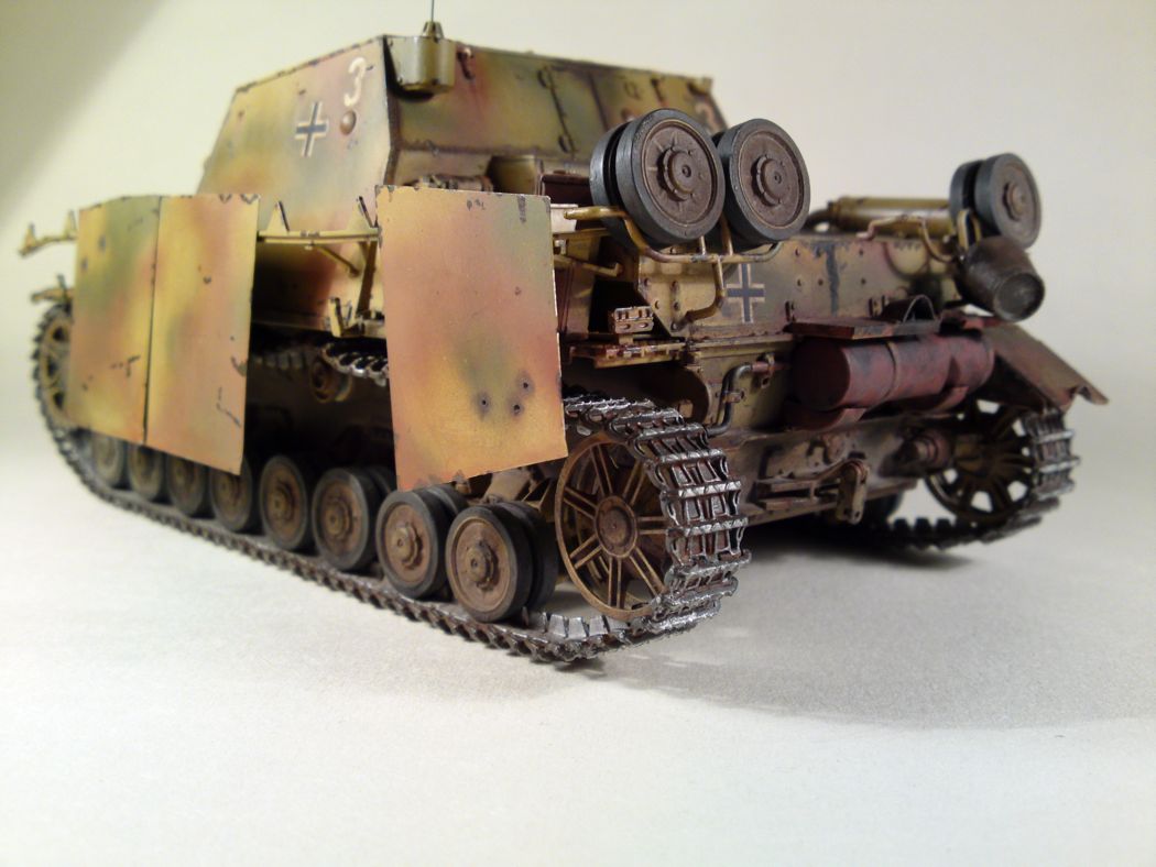 Экраны специально не стал полностью крепить, садятся уж больно плотно, а мелкие доработки нет-нет да делаются. Считайте, что немцы в горячке боя их просто накинули. Воздушные фильтры дело заменяемое, хотя и эти не выглядят новыми. Насчет облоя, то не подскажете на какой именно фотке вы его обнаружили? Загрязнение нижней части экранов возможно и нужно было бы зделать, но попадаются фотки хроники и с очень чистыми экранами, при изрядной потертости самой техники. Замятый грязеотбойник планирую заменить современем на жестяной. Насчет подставки считаю делом совсем необязательным, хотя если она есть и зделана совкусом, то это очень даже хорошо. Спасибо всем за отзывы и особенно за конструктивную критику.