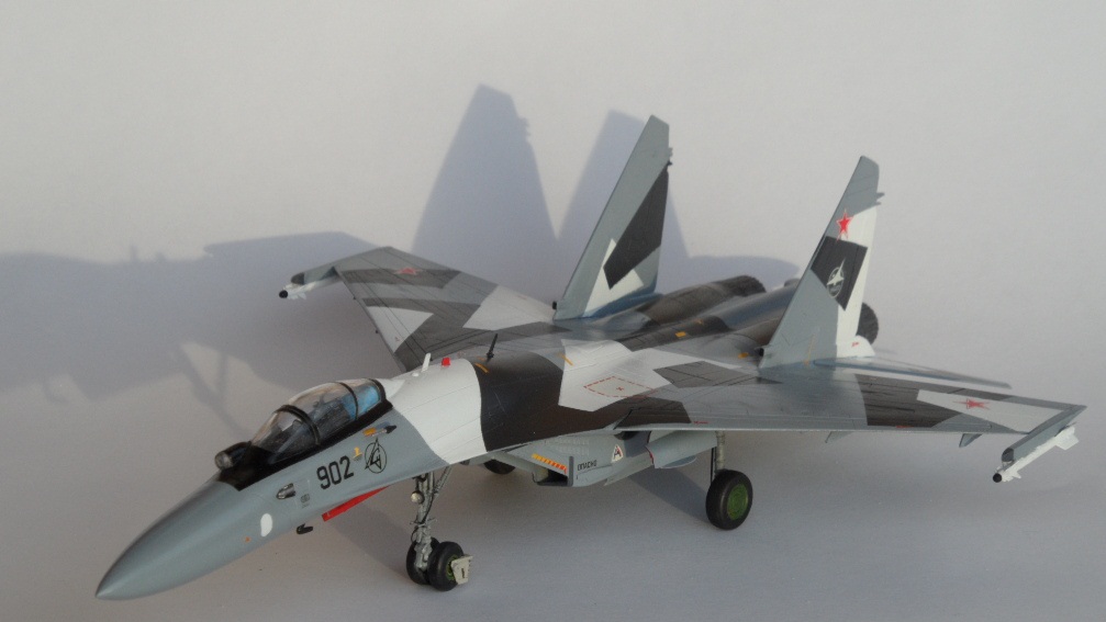 Всем привет, наконец то доделал свой истребитель поколения 4++. Су 35 бм отличается от предыдущих су 35 усиленным планером, увеличенной взлетной массой, отсутствием тормозного щитка, передней 2х колесной стойкой , отсутствует пго. Вобщем перечислять все отличия нет смысла так как инфы о нем много. Теперь по модели - для данного самолета заказал отличные смоляные сопла так как в наборе они совсем не похожи на сопла су 35. Кабину такую никто не выпускает и я решил сделать ее самому кое что обозначил декалями кое что сам нарисовал . Была переделана носовая сойка шасси и изготовлен щиток на передние колеса, маленько изменил кили, заново сделал носовой конус, перенес визир со средины фонаря на правую сторону, добавил проводку на стойки шасси, переделан кормовой ласт, штангу дозаправки, ну и по мелочам. Модель не пачкал так как это демо версия, да и самолет новый. Ну все , приятного просмотра.