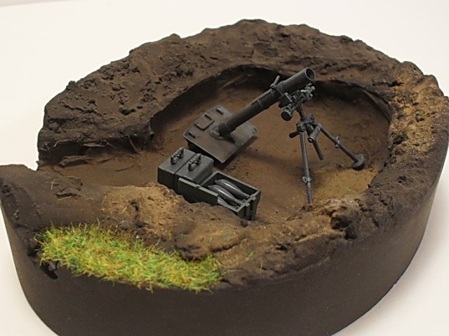 Миномет хорошо смотрится вместе с подставкой. Единственно, может стоит подставку с торца окрасить серой, либо черной краской? Было бы еще зрелищнее...