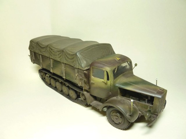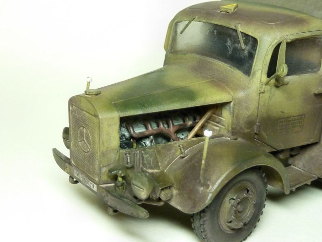Такой же собираю.Пока только двигатель.Красить буду акрил от Звезды кистью,на аэрограф не накопил.А где солдаты вермахта?В кузове?Их там двое!