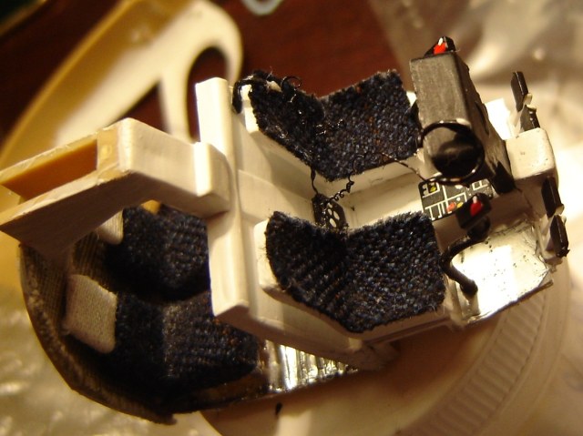 Изначально - модель боевого вертолета Hughes 500D. Но решил сделать из него подарок девушке на НГ, поэтому решил сделать частный вертолет с красивой новогодней окраской. Фото буду выкладывать по мере продвижения. Вертолет предполагается белым с синим со снежинками :). Салон решил переделать - алюминий на пол (фольга), кресла - темно синий велюр (ткань на цакрине). Улучшенная звукоизоляция моторного отсека с мягкой обивкой (тоже ткань). Радиостанция с двумя парами наушников (наушники согнуты из проволоки и пропаяны надлежащим образом, провода для наушников - тонкая жила провода). Аптечка. Огнетушитель (на фото пока нет).