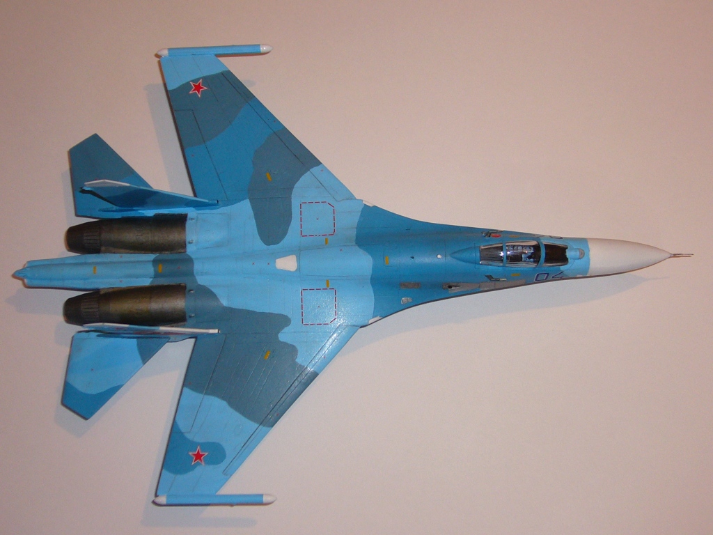 !А неплохая Сушка получилась! Для кисти (коллега) - просто даже очень! Саша, мы всем докажем, что аэрограф не всегда уж и нужен!))) Чистота фонаря на уровне - вот что понравилось больше всего. Не понравилась потерянная расшивка в очень нужных местах и тонировка жарки. По фоткам - пожалуйста, не снимайте модель на фоне плинтуса стеклопакета! Подобных фоток от разных авторов уже предостаточно, создаётся впечатление, что делает один человек. Больше фоток, желательно в неожиданных ракурсах! Оценку не ставлю, т.к. ставить её просто некуда, но дебют удался на "хорошо". Не твердую (количество и качество фоток желательно увеличить), но заслуженную!