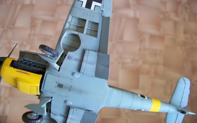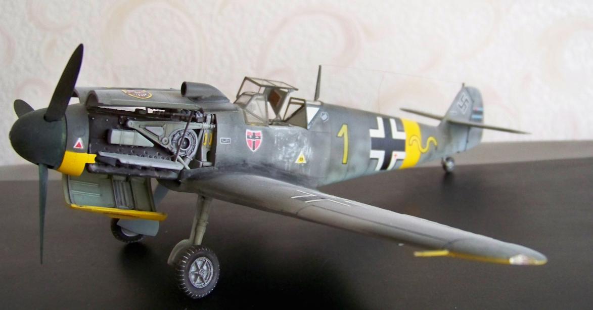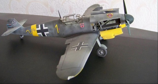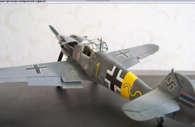 Моя вторая модель на "каропке" и первая покрашеная аэром. Модель собиралась при минимуме шпаклевки, окраска RLM-74,75- Акан, RLM-76 мешалась из акриловой "Звезды" белой, светло-голубой, серой и зеленой интерьерной.(кстати,после многочисленных эксперементов, выяснилось, что дуть с аэра "звездой" можно, если предварительно развести ее с водкой в пропорциях 1/3) RLM-02 мешался из акановских RLM 71, RLM 74 и светло серой "Аэрофлот". RLM 04- тамия XF-3. Далее смывка - акварель, потом лак тамия с наполнителем для матовости. Следы от выхлопов- копоть при сжигании литника. И в завершении хочу выразить огромную благодарность пользователю BorisV за предоставленную информацию и советы при сборке и окраске .