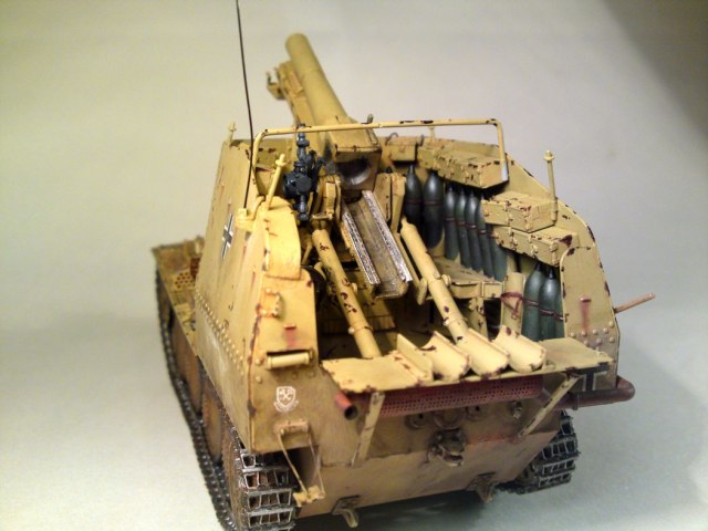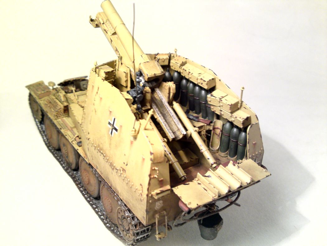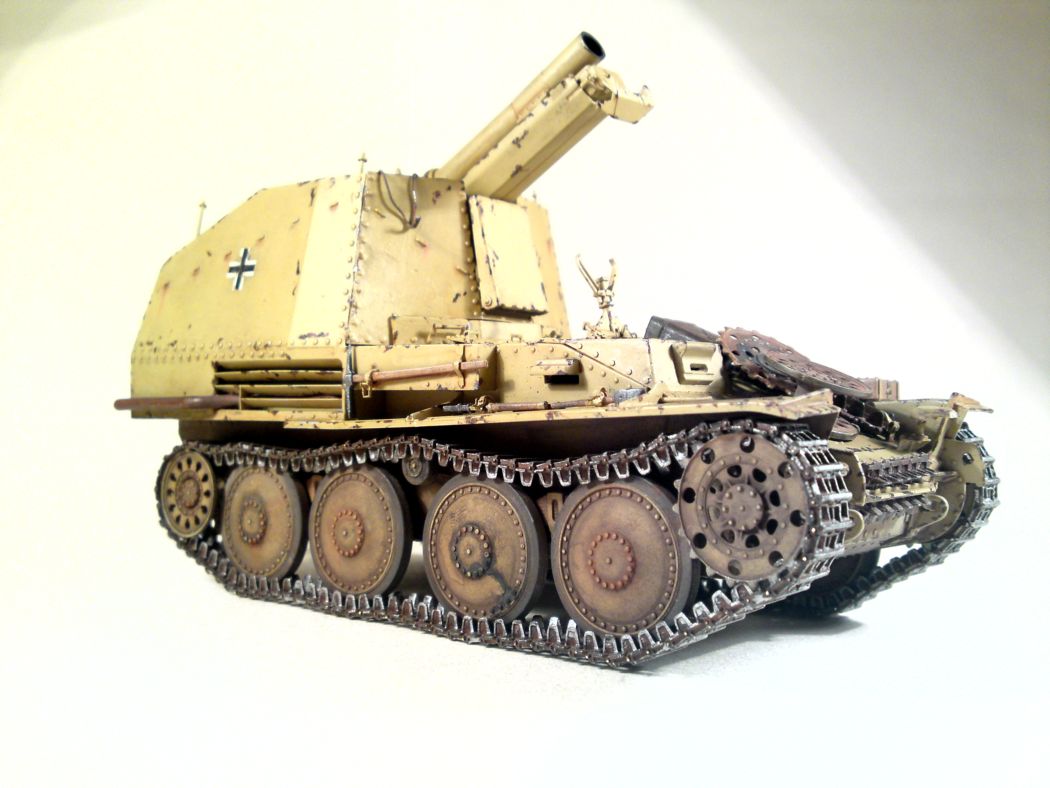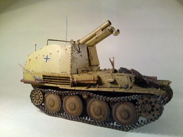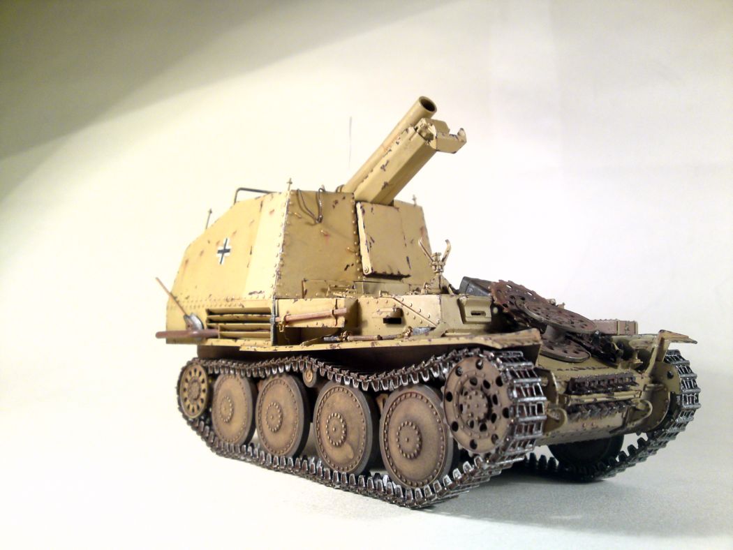 Вообще то не танкист,но ваши работы смотрю с удовольствием, хорошее чувство меры, вмеру потёрт, вмеру попачкан, ничего лишнего за исключением...Катки на моторном отсеке, такое впечатление, что пацаны в соседнюю деревню поехали металлолом сдавать(мысли в слух, не обижайтесь). И вопрос, вы уверенны что экипажи самоходок вооружались штурмовыми карабинами? А модель отличная.