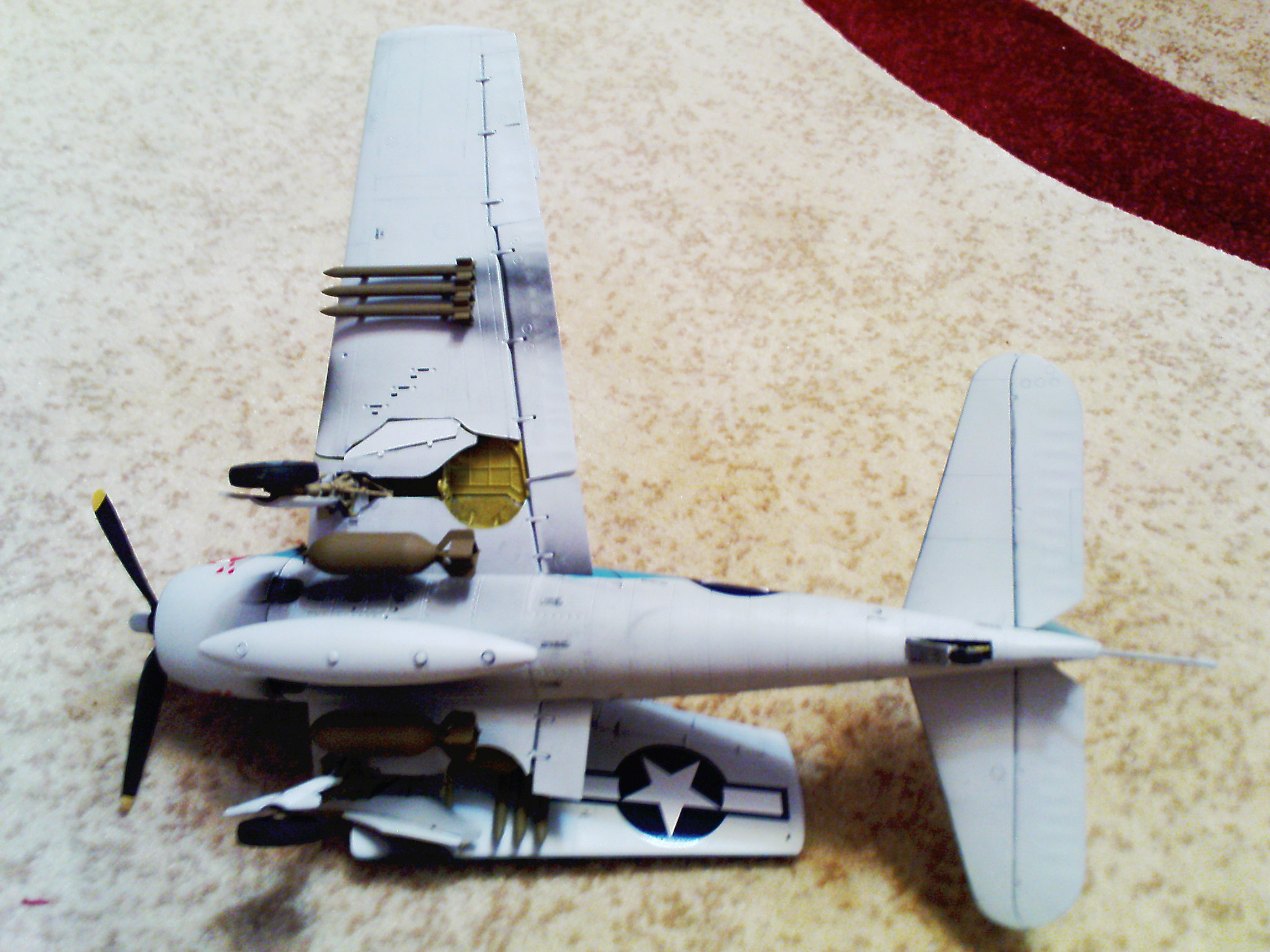 Собрано от души, смотрится. Тут про несовпадение цветов говорили, наверное так и есть, сам не в курсе - штатовская морская авиация не моя тема. Хотя когда-то очень давно собирал минский Хеллкет с декой от Эконики и в тех же цветах.