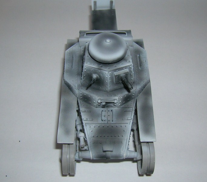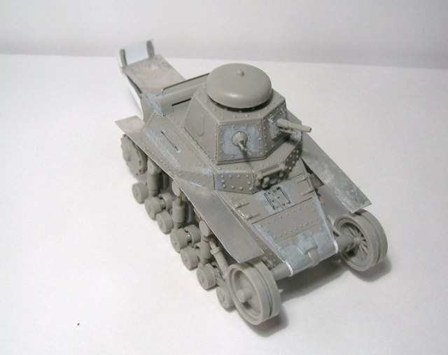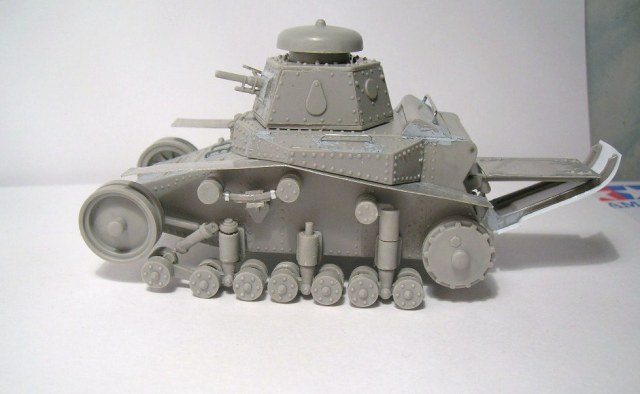 По мат. части - большую часть заклёпок надо менять, стыки деталей (особенно на башне) шпаклевать, люк мех-вода переделывать (увеличивать размер и менять петли), бортовые спонсоны наращивать раза в полтора, подвеску заднего опорного катка переделывать, пулемёт менять.
