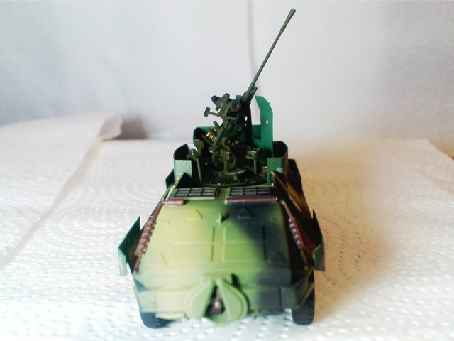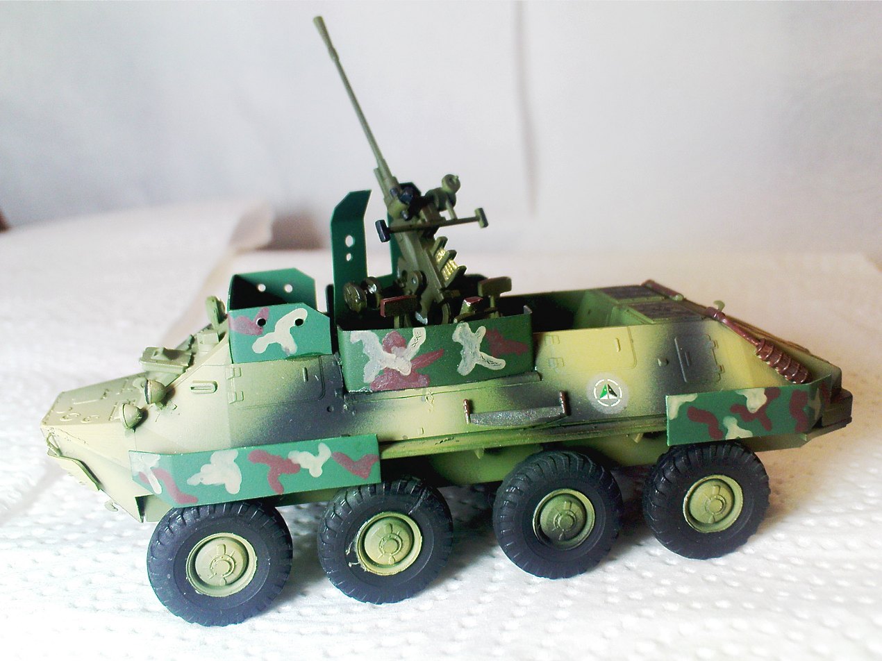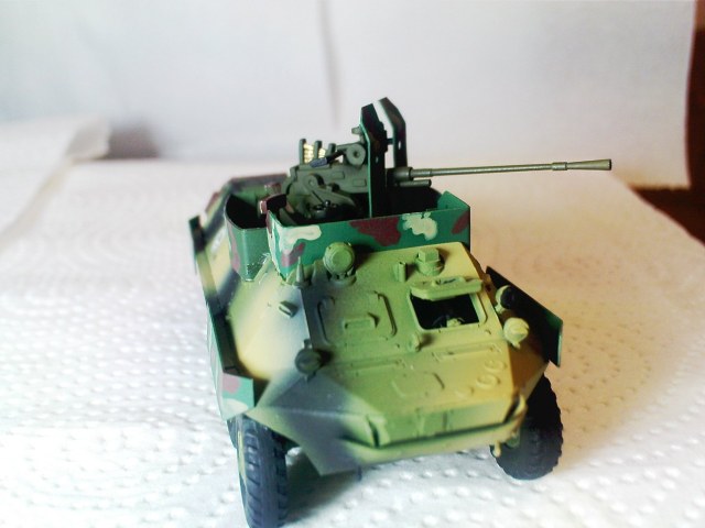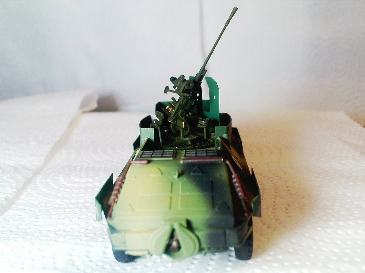 Особенно, когда речь идёт о моих любимых БТРах, так вот, осмелюсь заявить, что такая машина, даже теоретически, вряд-ли могла существовать в действительности. Начнём с того, что на данный момент, по крайней мере мне, не известно ни одного фото БТР-60П в Афганистане, ни советского ни афганского. Далее, зенитка. Чисто теоретически, такие пушки могли попасть в Афганистан ешё в 50-60х годах, известна ведь фотография СУ-76М на параде в Кабуле ещё при шахской (или королевской, не помню кто там был)власти, но упоминаний о их использовании после ввода советских войск нет,не дожили, ввиду моральной и технической устарелости. Думается и с зенитками ситуация аналогичная.Да и к чему лепить на машину такое древннее орудие, при наличии гораздо более современных ЗУ-23-2.