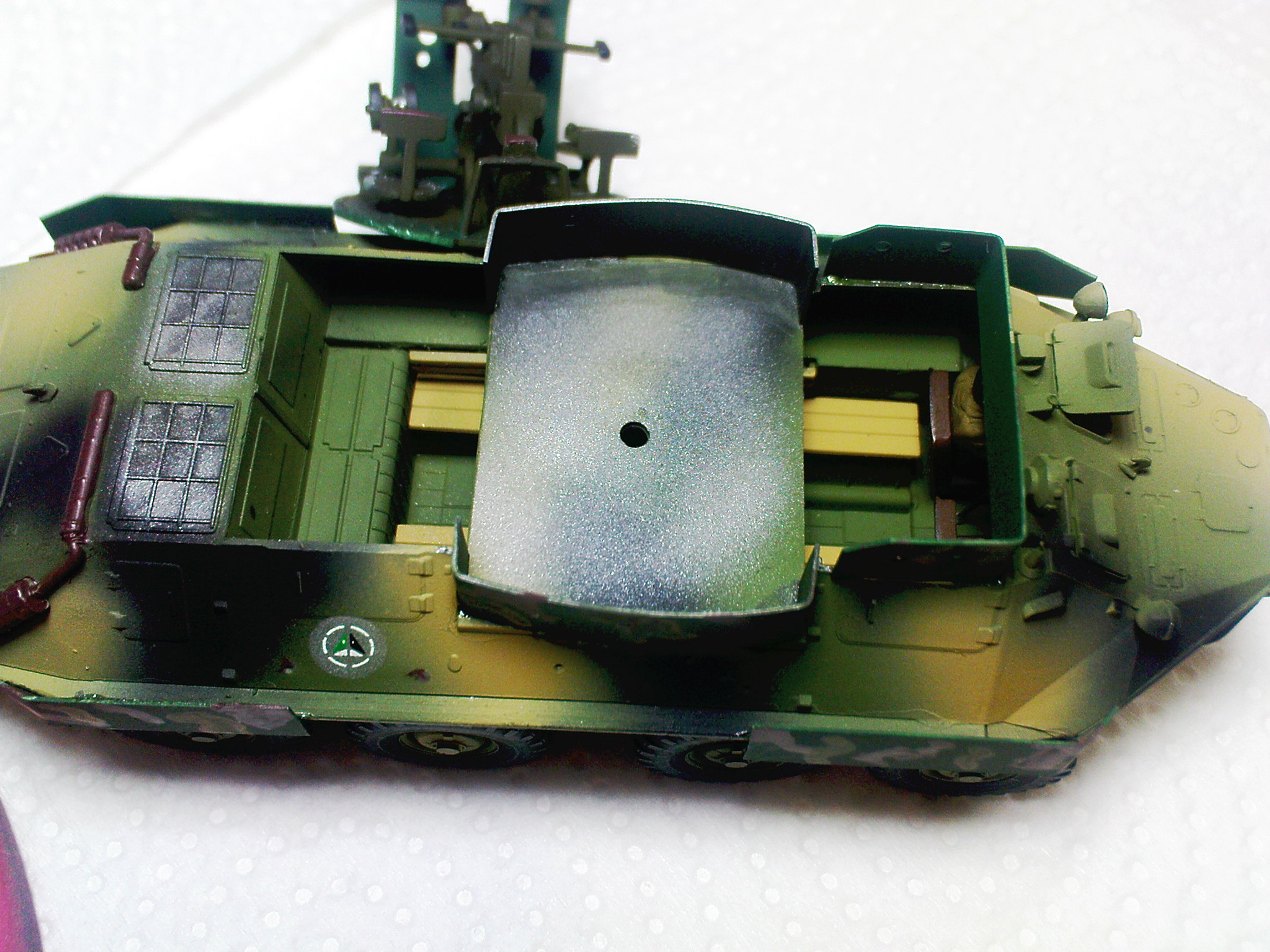 Петру.Поему бы нет! Я вот про следы кисти только сейчас понял, ведь действительно в 72-ом они должны быть микросокпические.. На Ваших фото по-моему БТР-60 ПБ без башни и БТР-70? Корму (моеймашины) пожалуй тоже можно переделать. Надо только внимательно подумать как? С учетом масштаба