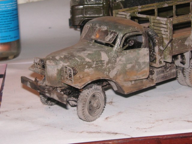 Пытался собрать ГАЗ-66, купил к ней конверсию, колеса, также часть ходовой. Однако так и не понял как клеить "смолу" к пластмассе, ну и в целом уже более или менее нормальная модель была испорчена плохой покраской, и косяками с конверсионными деталями.