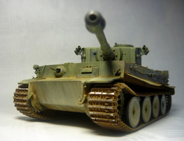 Я вижу Тигры весьма популярны. Как говорится, вы хочите Тигров - их есть у меня. Очередная старушка Тамия, травлёнка и ствол Абер, гуси Фриул. К сожалению, опять не обошлось без косячков, хоть я и использовал кучу справочников по Тиграм, перечислять я их не буду. Окраска акрил от Тамии, смывка, тонировка, нанесение следов эксплуатации и в заключении обработка пигментами. По самой модели было много перепилов и исправлений, но перечислять их я тоже не буду, кто работал с этим китом - тот всё увидит. Заранее благодарю за внимание.