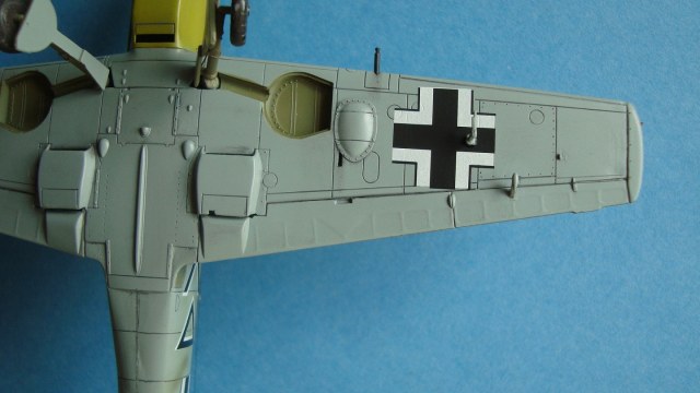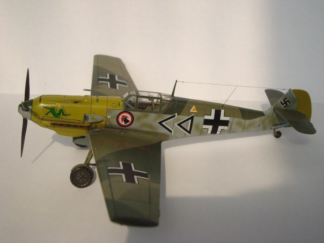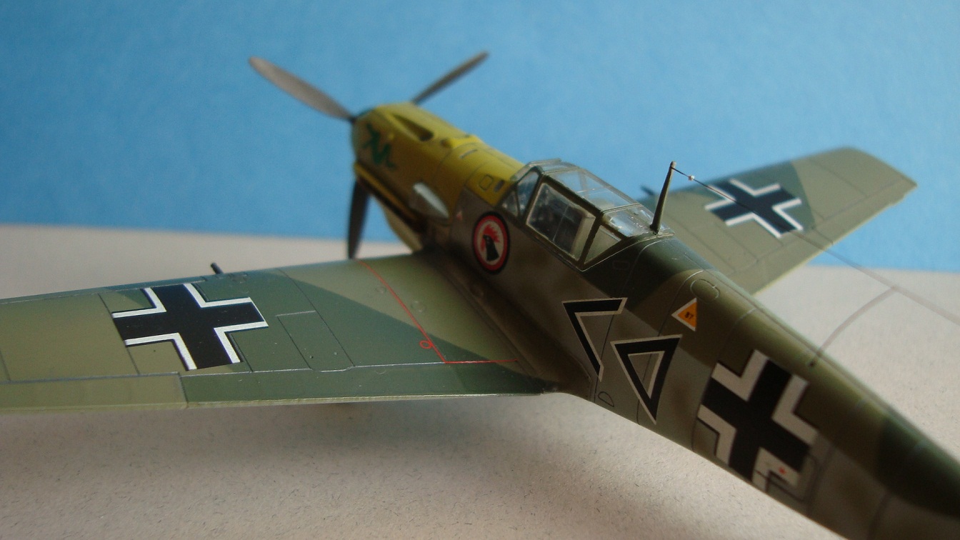 В комплектах ни к одному купленному ICMовскому мессеру не было свастики, а из НЗ ни одна в размер не лезет. Так что подождет Ганс до лучших времен. А с копотью и выхопами... Как говорил один человек: на любителя это. Не стал я еще любителем немцев пачкать, возможно позже...