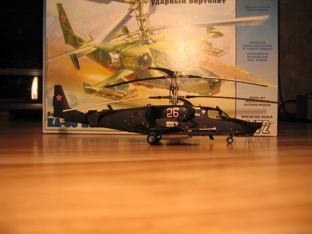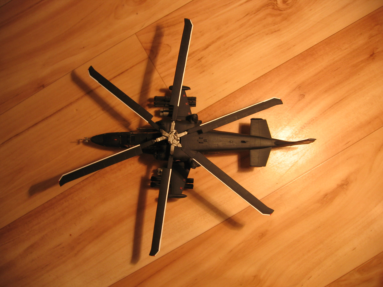 Ка-50 Чёрная акула, моя следующая модель после «Ханомаг», собрал за 1мес. При сборке фюзеляжа трудностей с подгонкой не возникло, всё просто отлично, красил акриловыми красками от (Zvezda). Как всегда я придал при раскраске особое значение мелочам, таким как: пилоту, кабине и бортовым огням.