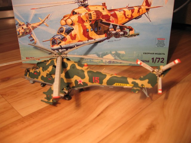 Год в котором я начал сборку Ми-24Д 2008г., собирал 1мес. Использовал акриловые краски всё той же фирмы что и модель, на то время использовал вместо клея "дихлоритан". По ходу сборки все части вставали на свои места как надо, вот, както так.