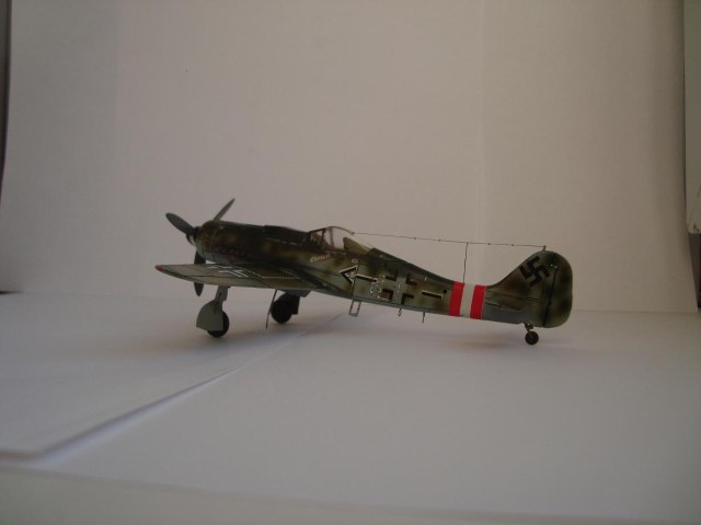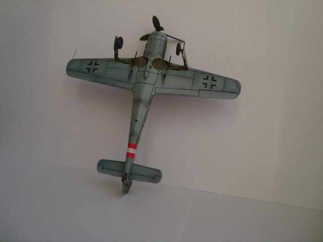 Выбрал данный вариант, хотя долго сомневался за окраску и потрепанность, но решился. С боковиками грустно: кроме 1 фото с пилотом не нашел ничего кроме уймы рисунков. Так как мессеры Баркхорна имели обильные разноцветные моттлы, решил не делать «чистыми» бока а подпятнать с избытком. За сколы тоже сомневался долго: вроде как ас, а с другой стороны, – конец войны, не до эстетики. Еще один аргумент в пользу чистоты: Баркхорн не сбил на Доре ни одного противника. Правда летал на ней до конца войны. В общем, решился на то что получилось.