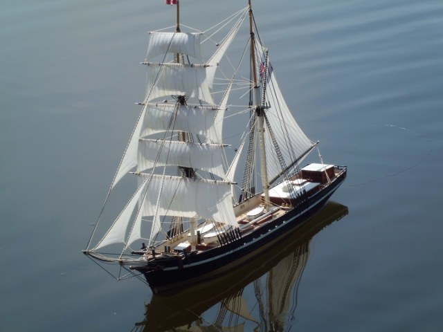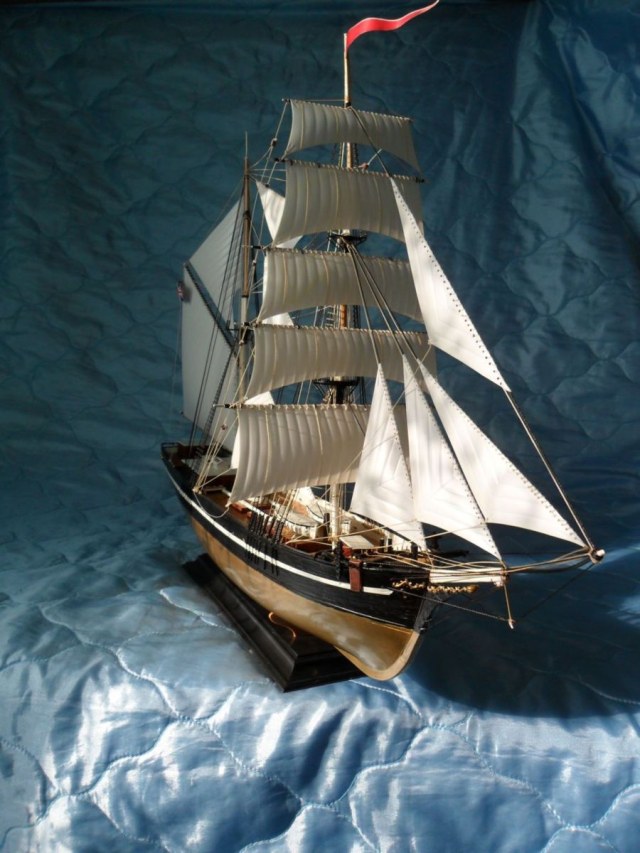 Re: Получилось очень солидно! Цветопередача палубного настила вообще супер! Такелаж грамотный. Единственное, на мой взгляд, что портит модель-это пластиковые паруса.