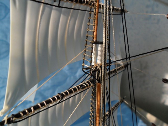 Очень понравился такелаж, особенно порадовала проработка крепления стакселей! Пожалуй, лучшая из бригантин, которые я видел собранными.
