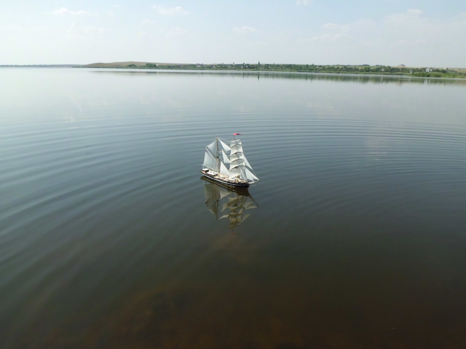 Последние 5 фото которые я добавил-это все,что осталось от этой бригантины.Вчера младшая дочь уговорила спустить ее на воду,я успел сделать несколько снимков.Впоследствии поднявшийся ветер не позволил подтянуть ее к берегу.Намокшая нить,которую мы привязали к якорному клюзу,порвалась.Крупная волна и начавшийся дождь не дали ей шансов достичь другого берега,где бы мы ее подобрали.Продрейфовав до середины водохранилища бригантина легла на борт и затонула.Теперь,надеюсь,в скором времени появится новая Сказка о возрождении.