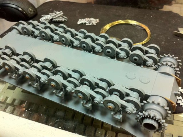 Недавно я им занялся и обнаружил, что в комплекте нет гусениц... Долго искал я траки для мауса, но так и не нашел (кроме японского хобби линка, но этот вариант я сразу отвергнул. Не люблю заказывать из-за границы). Пришлось приложить смекалку, купил 2 комплекта гусениц от тигра 2 (фриул) и начал пилить, чтобы было хотя бы похоже на оригинал.