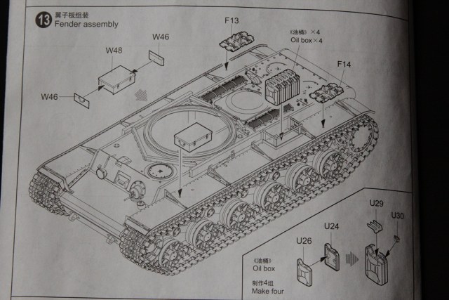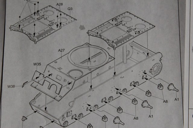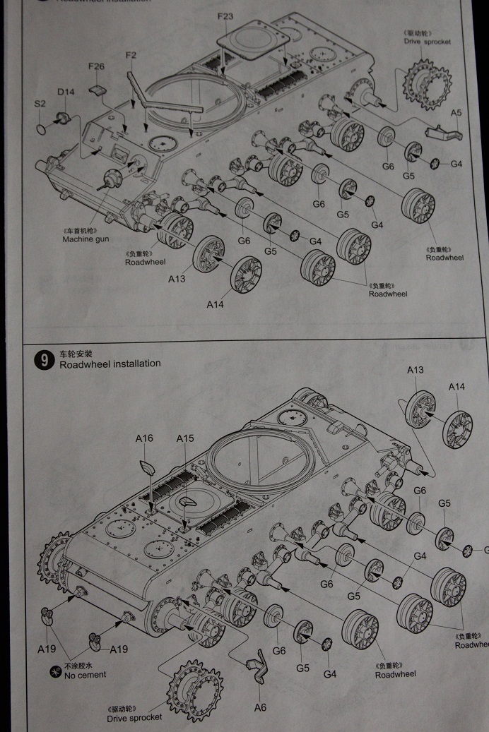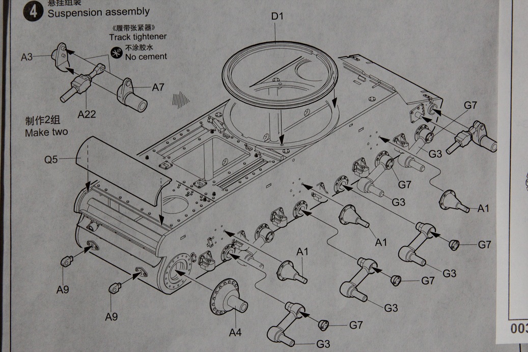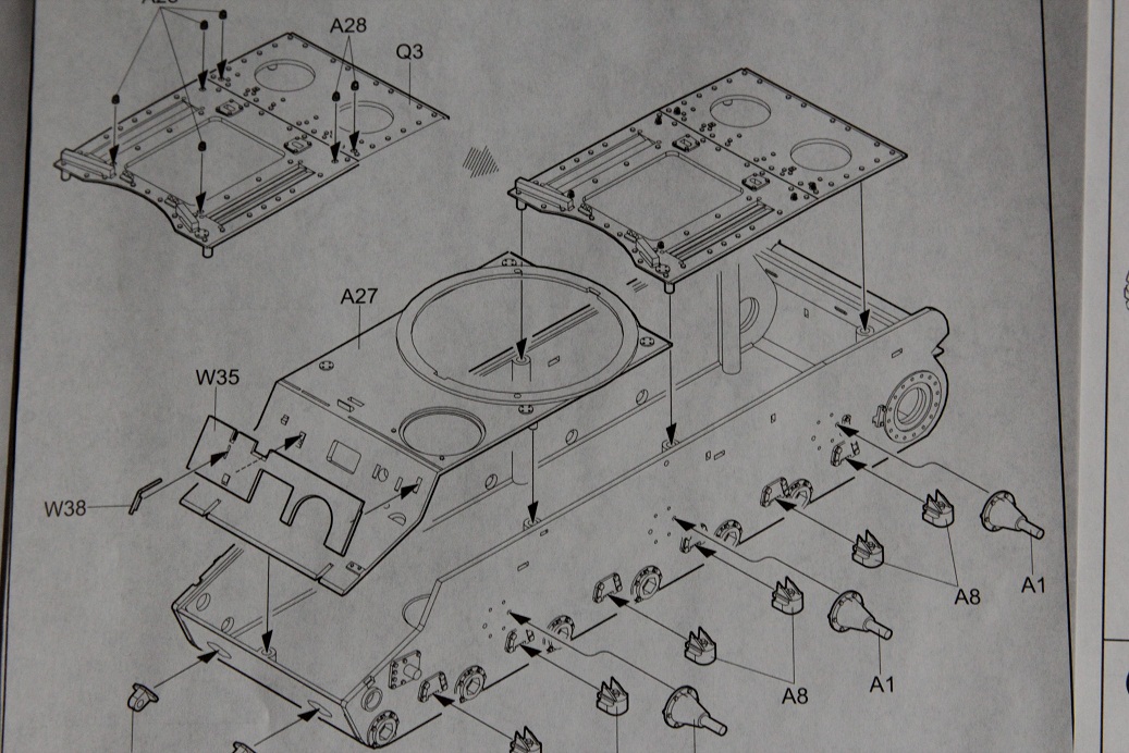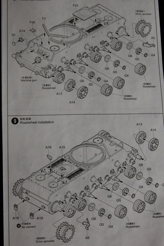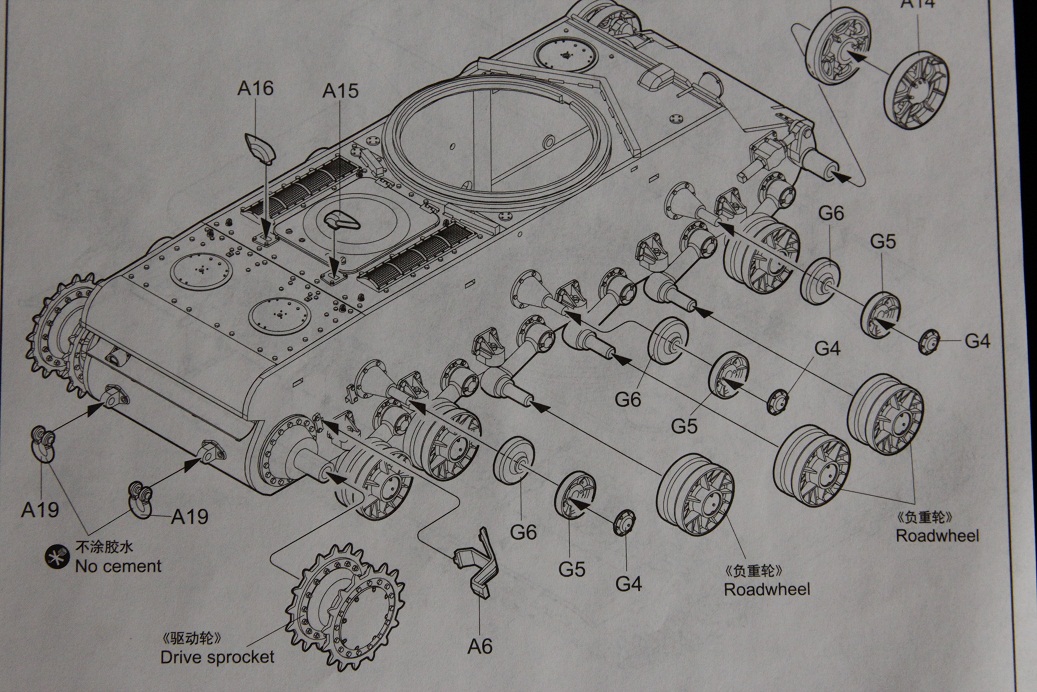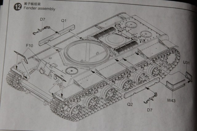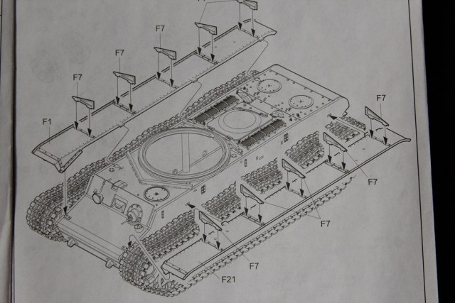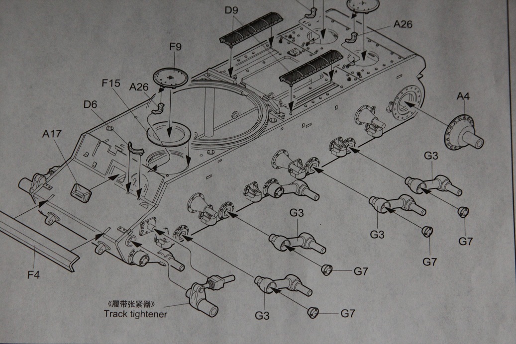 Инструкция как всегда выполнена в виде гармошки, но всё довольно понятно изложено, ещё есть листок по окраске модели и тут трубач предлагает нам покрасит данный танк в трехцветный камуфляж, но если верит архивным фото это ошибочно! На этой машине камуфляжа не было…