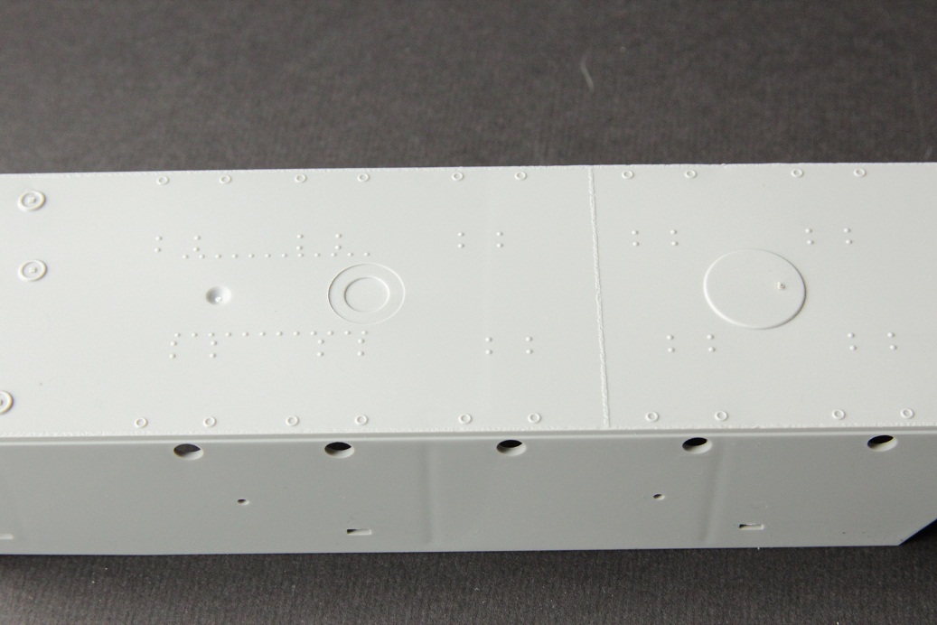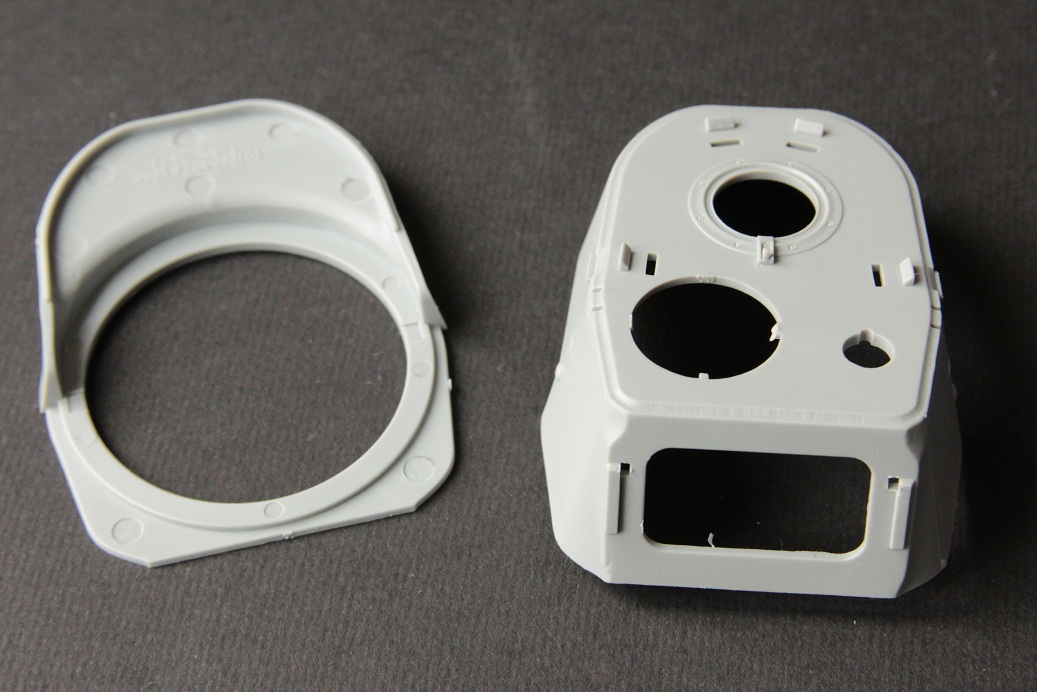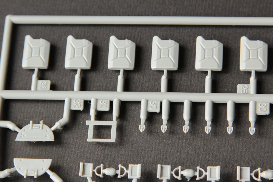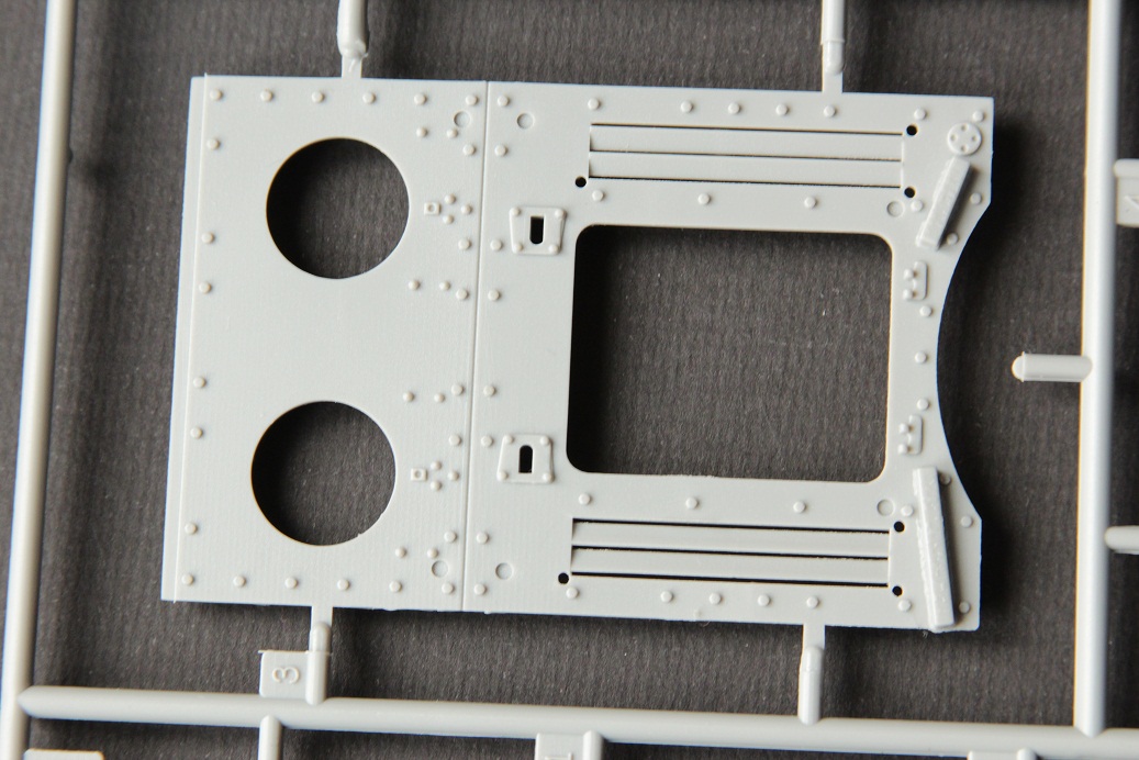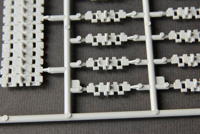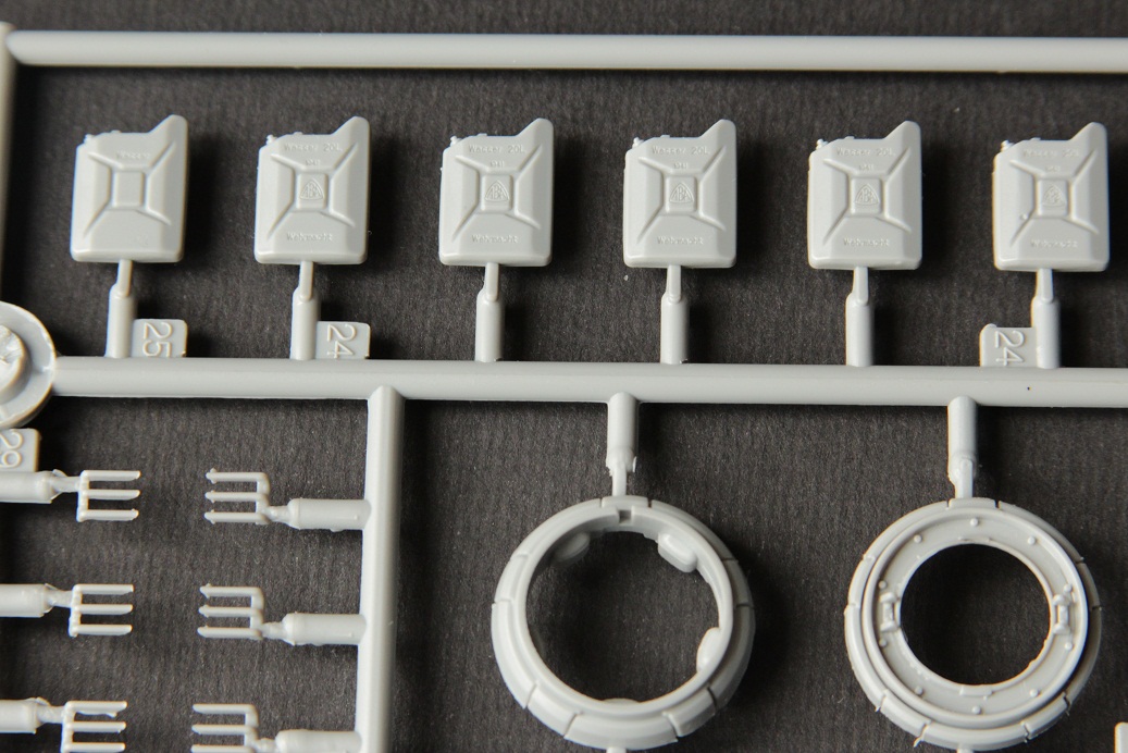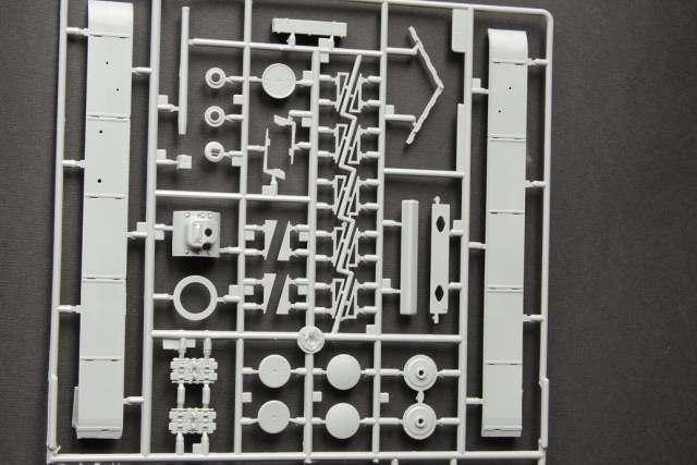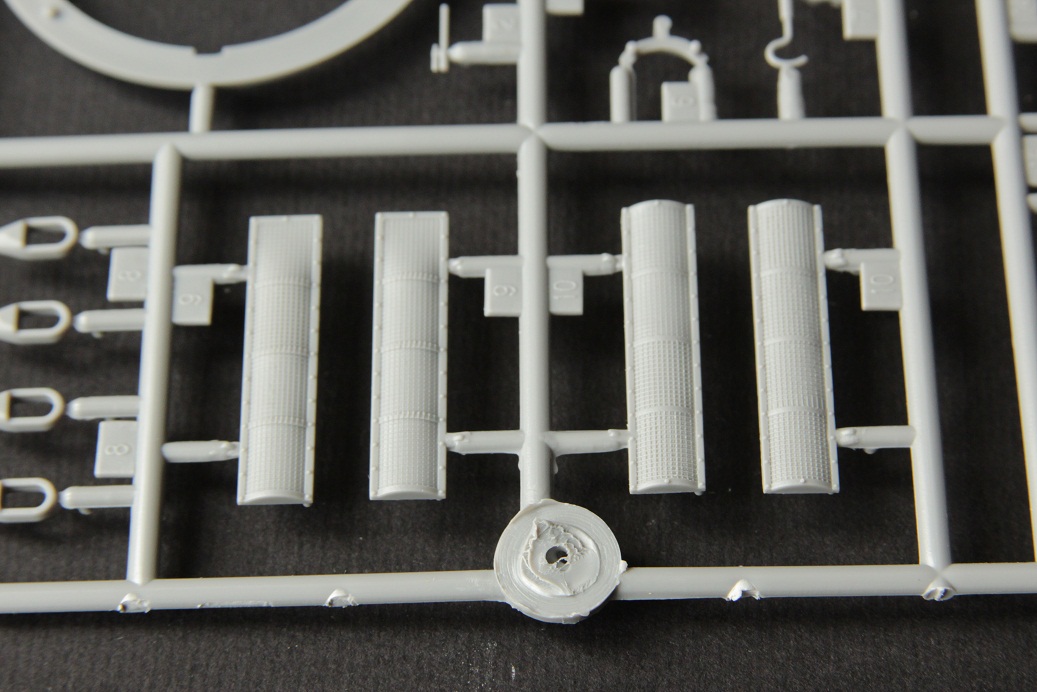Модель довольно редкая охотился за ней почти полтора года. В коробке лежит 9 литников серого пластика довольно хорошего качества, два варианта траков полу наборные из секций и винил (не самый плохой, но ставить я его не рекомендую, лучше сразу в помойку) но на пластиковых траках огромное количество толкателей и это очень сильно удручает лучше конечно траки заменить на фриул. Корпус и башня идут отдельно есть ещё кусочек медного троса и остекления фар. При детальном осмотре башни оказалось, что стыкуемость её не самая хорошая и наверно придётся шпаклевать, да и сварка на башне совсем замыленная. При осмотре содержимого коробки заметил одно отличие от предыдущих наборов КВ это резиновые прокладки для катков т.е предполагается , что катки должны крутится, ещё понравилось качество канистр предлагаемых трубачём они вроде даже лучше чем у тамии. В общем, набор достаточно хороший, если не считать облоя на некоторых деталях и ужасного толкателя на дульном тормозе (а вообще ствол желательно заменить), но конечно не помешает в дополнение набор травления на эту машину от фирмы Voyagermodel обзор на этот набор можно посмотреть тут http://karopka.ru/community/user/8433/?MODEL=267322