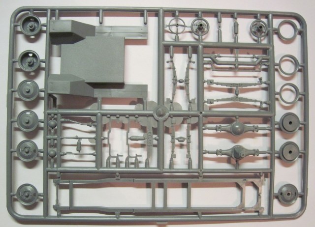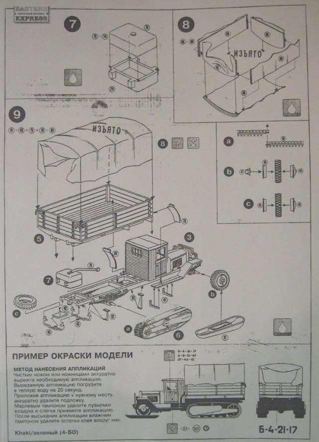Предусмотрена вероятность собрать грузовик обутый в лыжи (лыжи для передних колес идут в комплекте). По всей видимости первоначально модель комплектовалась тентом из пластика, но потом его «изъяли», так что надо будет мастерить что-то самодельное.