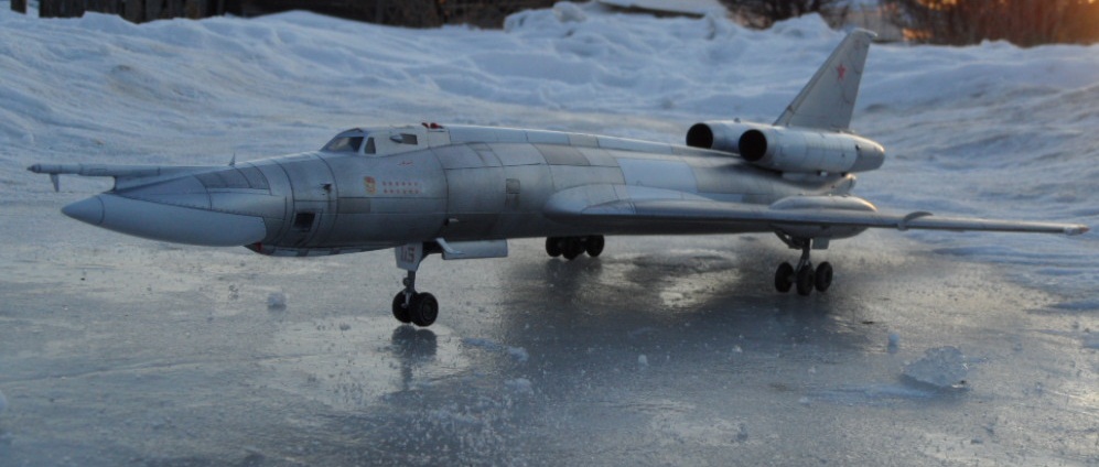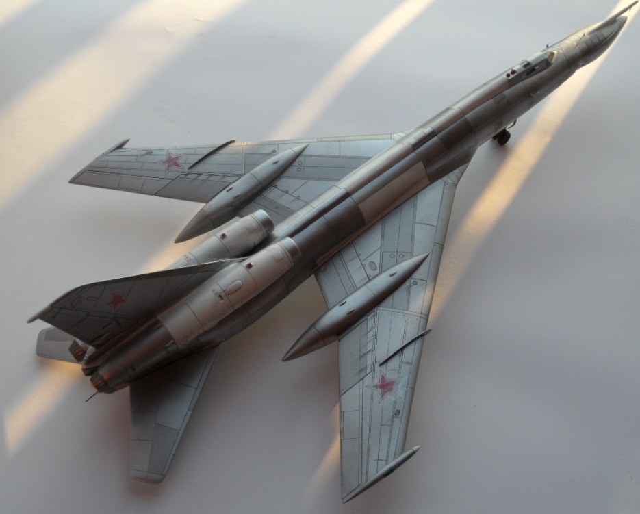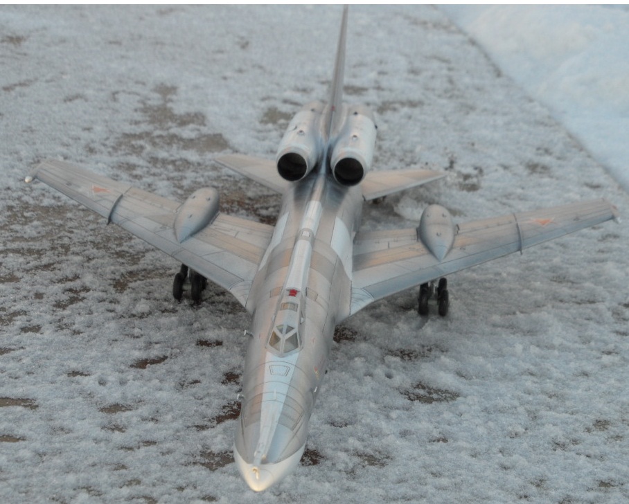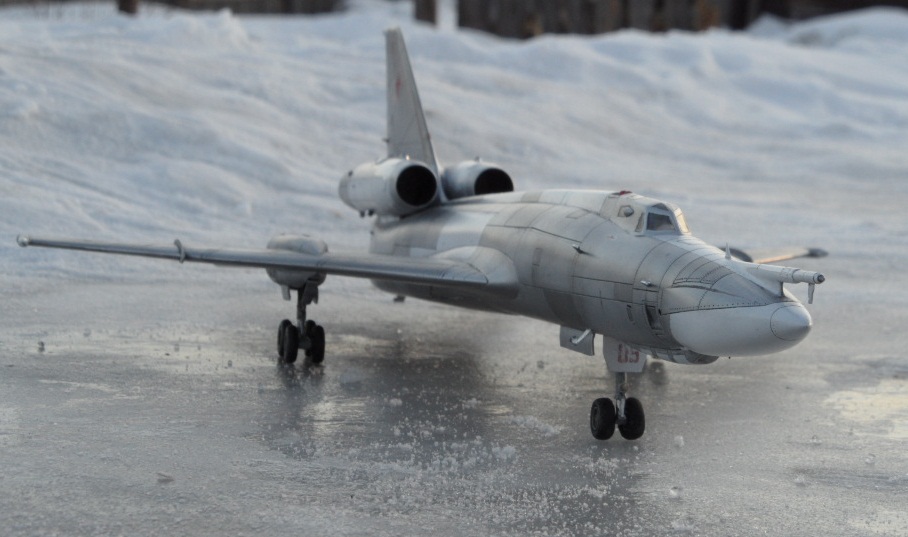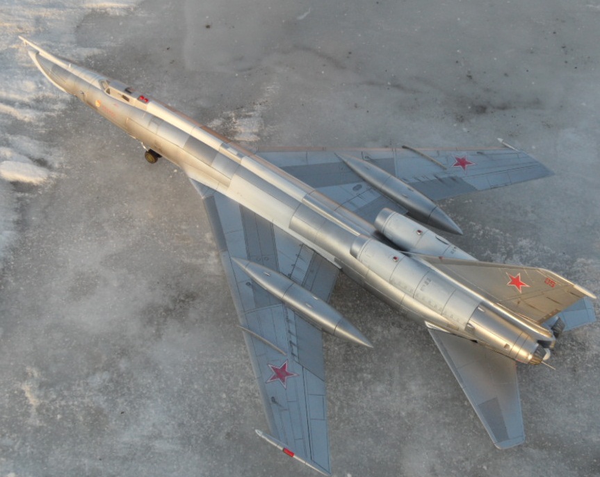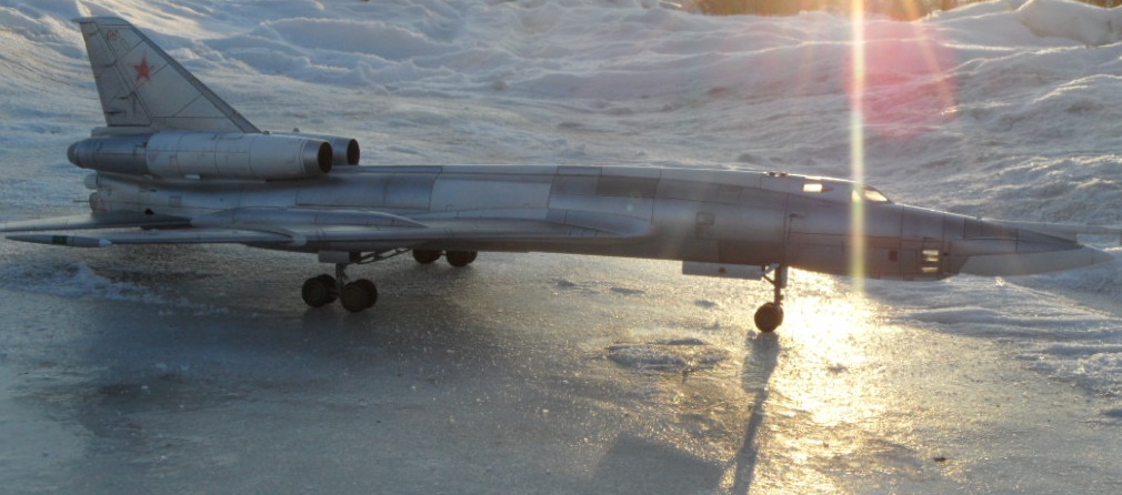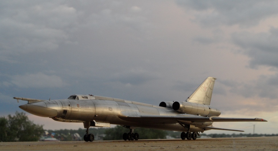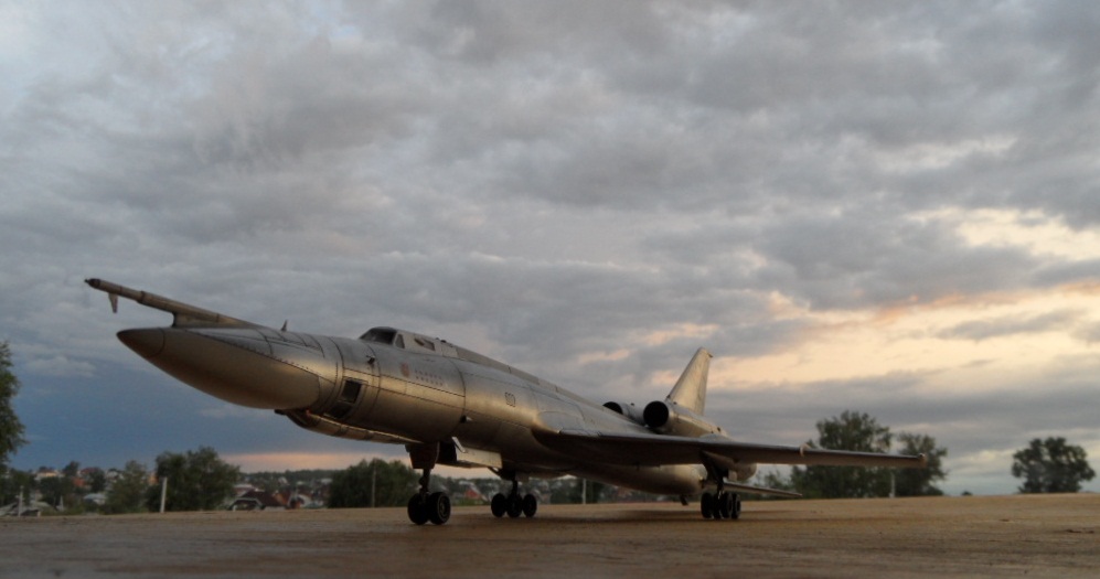 Всем привет, почитав отзывы о своем ту 22, а написано там было что нужно модель оживить, кое что доделать я принял решение - ПЕРЕДЕЛАТЬ. Если честно то модель от итала только издалека похожа на ту 22, а так как собирал я его давно, когда еще только учился правильно красить, то и доработок там соответственно никаких небыло, а дорабатывать нужно все, удлинять фюзеляж , переделывать нос, колеса, стойки шасси итд. Так как модель у меня уже собрана я не решился на глобальный распил, честно побоялся испортить, а модель такую уже и не купить- сняли с производства. В общем краску сошкурил, оторвал мотогондолы- это самый явный косяк, на самолете они расположены гораздо ближе чем на модели итала да и вообще не так, переделал мотогондолы, прорезал недостоющую расшивку,укоротил стойки , маленько переделал , сам сделал штангу дозаправки, добавил антенны , воздухозаборники, заменил остекления кабины штурмана на пленку, прорезал окно для астрокомпаса, сделал приемники на гаргроте, зеркала заднего обзора для оперетора, переделал стабилизаторы под нужный угол, колес от Экипажа нет пока в магазине где я закупаюсь, ну ничего через 2 недельки подвезут, поэтому стоят родные на задних тележках и переточенные от су 24 на передней, добавил огни на мотогондолах, крыльях и передней створки шасси, декалей у меня небыло, поэтому тут все сборное от ту 160, ту 22м3. Окраска как всегда из баллончика + кисть. Переделывать всегда труднее чем делать из набора, конечно если счас с нуля делал бы всю механизацию бы сделал и удлиннил и много что еще, но так как модель уже была склеена то получилось что получилось. а вообще модель оч крупная- ту 128 рядом несмотрится истребителем переростком, обычный такой средненький истребок))) Большое спасибо " Дальнику" за помощь в сборе информации. Если кому интересно как ту выглядел перед переделкой я закинул одну фотку, ну и модель у меня на страничке есть, пока не буду удалять. ДОБАВИЛ пару фоток на солнце для сравнения размеров с миг 25, теперь видно насколько большой ту 22.