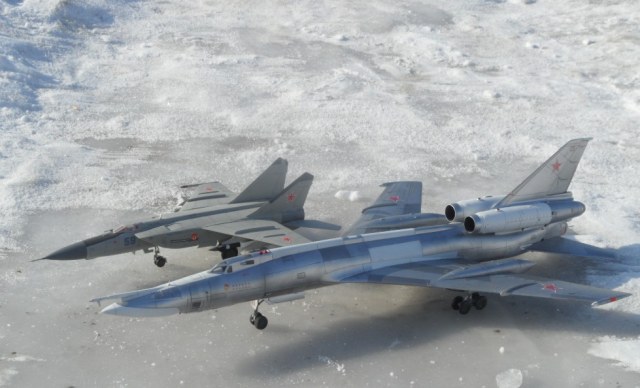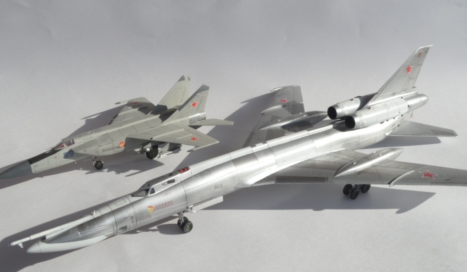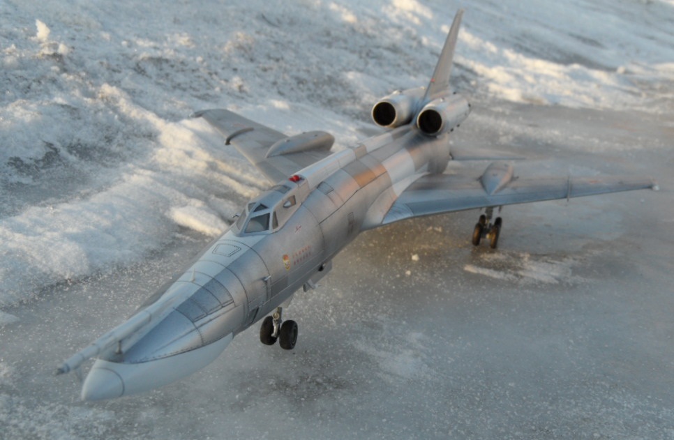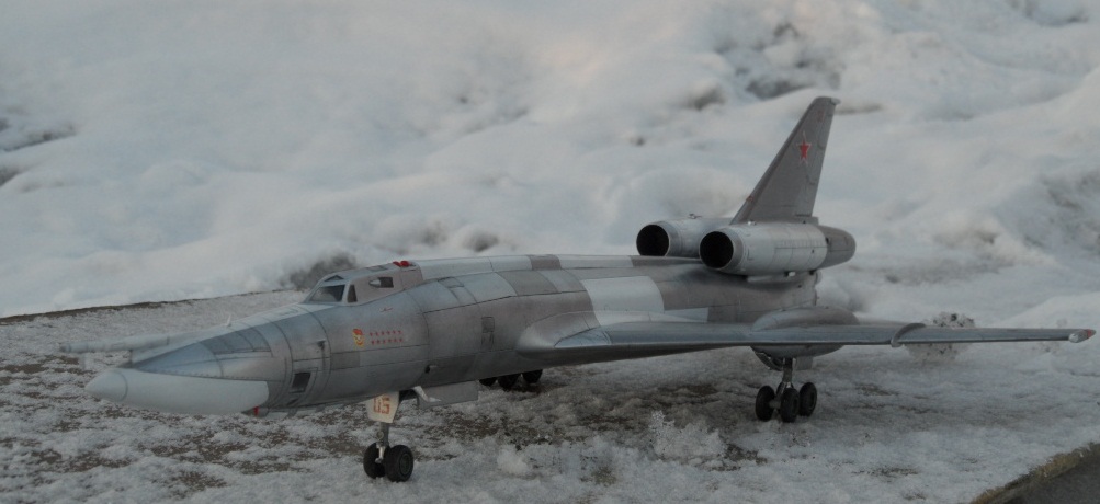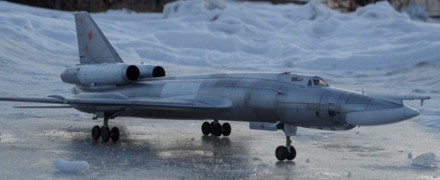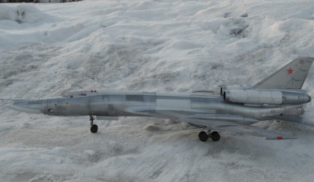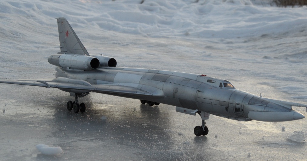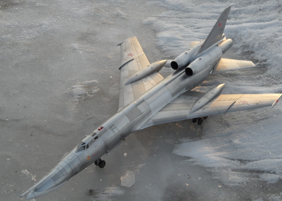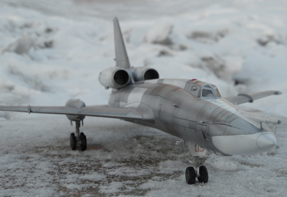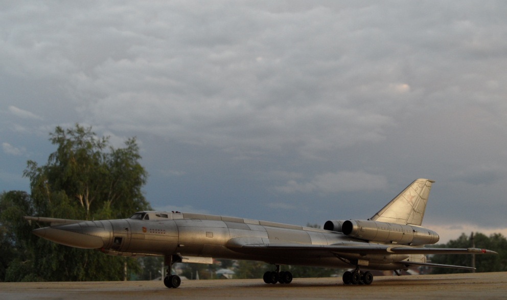 Всем привет, почитав отзывы о своем ту 22, а написано там было что нужно модель оживить, кое что доделать я принял решение - ПЕРЕДЕЛАТЬ. Если честно то модель от итала только издалека похожа на ту 22, а так как собирал я его давно, когда еще только учился правильно красить, то и доработок там соответственно никаких небыло, а дорабатывать нужно все, удлинять фюзеляж , переделывать нос, колеса, стойки шасси итд. Так как модель у меня уже собрана я не решился на глобальный распил, честно побоялся испортить, а модель такую уже и не купить- сняли с производства. В общем краску сошкурил, оторвал мотогондолы- это самый явный косяк, на самолете они расположены гораздо ближе чем на модели итала да и вообще не так, переделал мотогондолы, прорезал недостоющую расшивку,укоротил стойки , маленько переделал , сам сделал штангу дозаправки, добавил антенны , воздухозаборники, заменил остекления кабины штурмана на пленку, прорезал окно для астрокомпаса, сделал приемники на гаргроте, зеркала заднего обзора для оперетора, переделал стабилизаторы под нужный угол, колес от Экипажа нет пока в магазине где я закупаюсь, ну ничего через 2 недельки подвезут, поэтому стоят родные на задних тележках и переточенные от су 24 на передней, добавил огни на мотогондолах, крыльях и передней створки шасси, декалей у меня небыло, поэтому тут все сборное от ту 160, ту 22м3. Окраска как всегда из баллончика + кисть. Переделывать всегда труднее чем делать из набора, конечно если счас с нуля делал бы всю механизацию бы сделал и удлиннил и много что еще, но так как модель уже была склеена то получилось что получилось. а вообще модель оч крупная- ту 128 рядом несмотрится истребителем переростком, обычный такой средненький истребок))) Большое спасибо " Дальнику" за помощь в сборе информации. Если кому интересно как ту выглядел перед переделкой я закинул одну фотку, ну и модель у меня на страничке есть, пока не буду удалять. ДОБАВИЛ пару фоток на солнце для сравнения размеров с миг 25, теперь видно насколько большой ту 22.