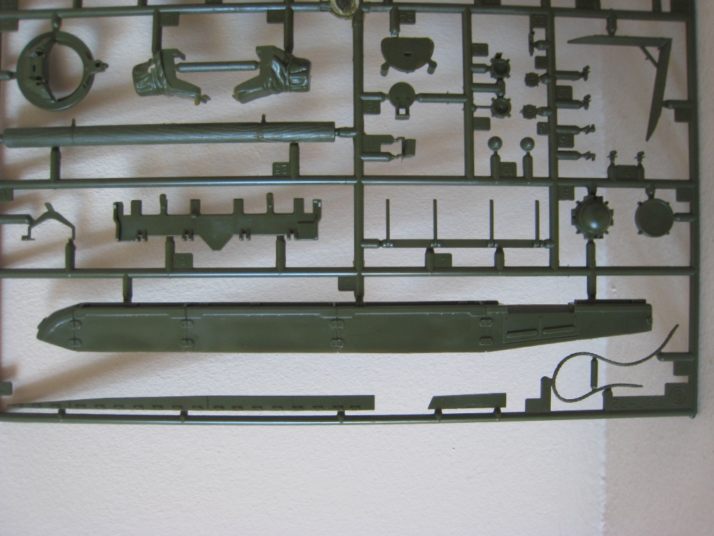 Цвет пластика стандартный для звезды - защитно-зеленый (с гусиницами - черного цвета). Облой присутствует на каждой детали, но в незначителном количестве. Следы толкателей и утяжины на видимых частях не обнаружены. На обоих литниках с деталями ходовой наблюдается смещение прес-форм (ступенька от 0,5 до 1,5мм) Пластик достаточно мягкий, не ломкий