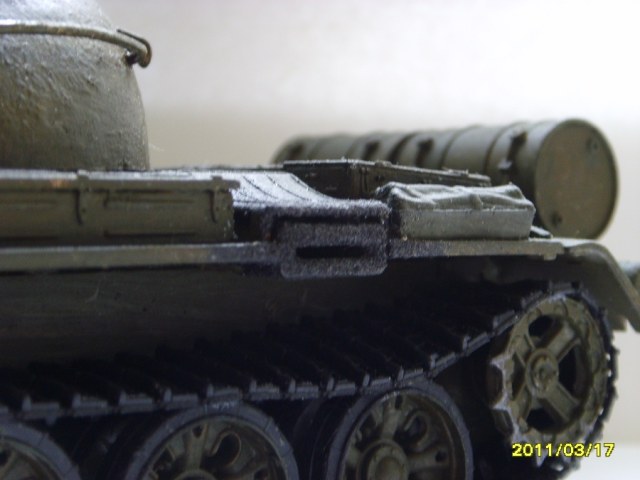 Сейчас собираю такой же танк, поэтому вопрос: в какой цвет красили траки? И как делали антену?