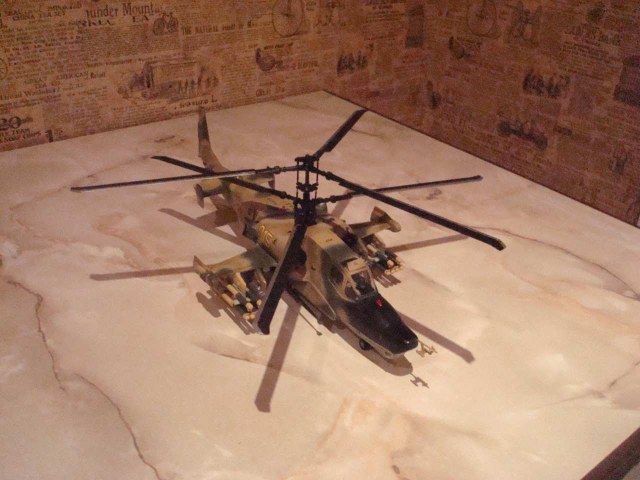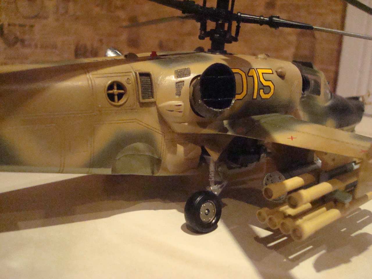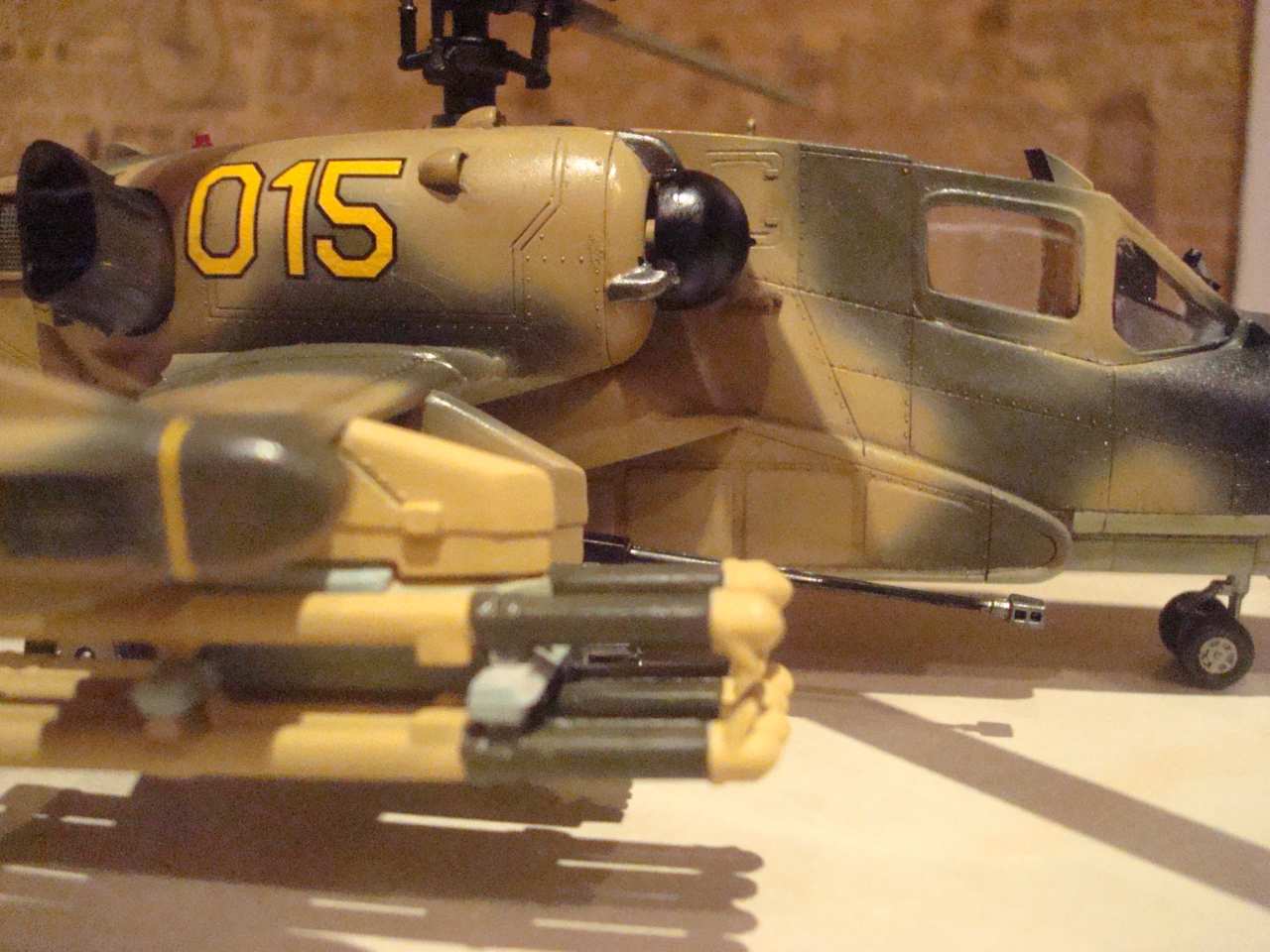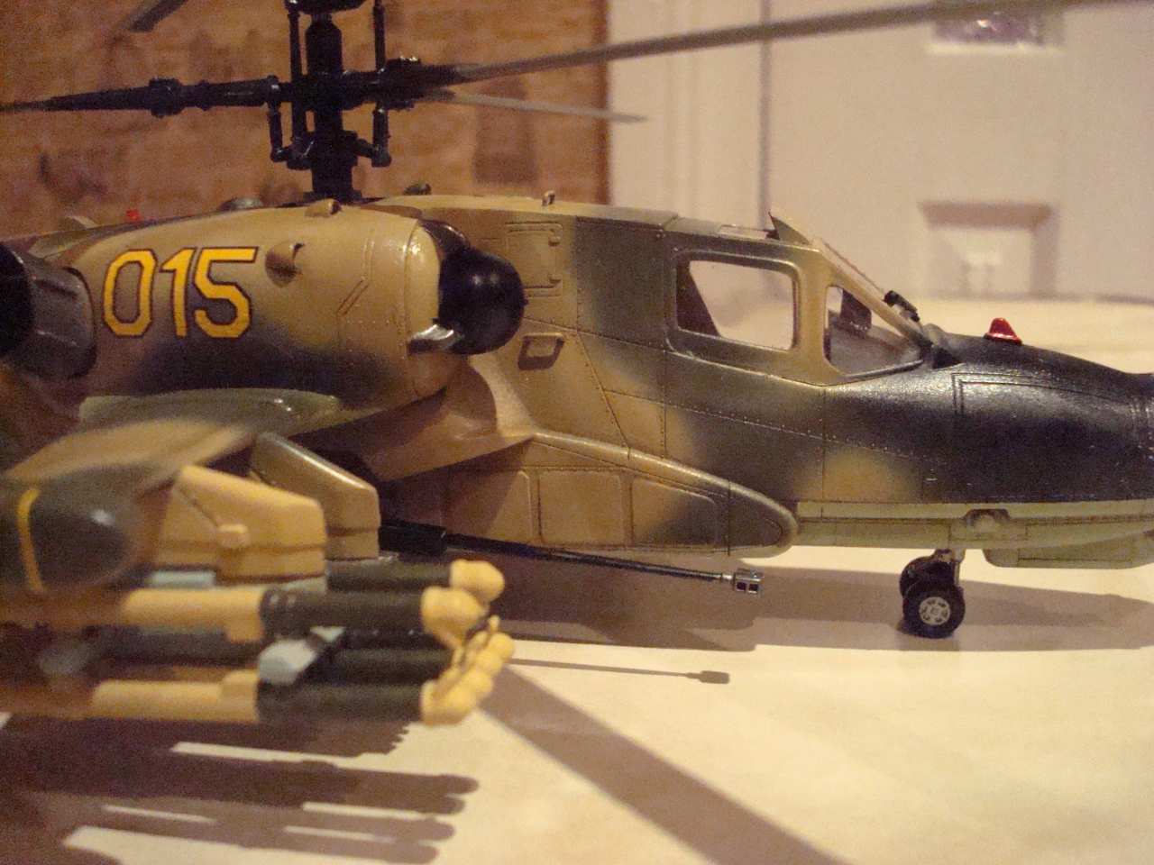 Да, для первой модели неплохо. Обычный изкоробочный вариант постройки, даже по покраске видно-все, как в инструкции) И как сказал коллега ФАНТОМ косяков хватает с лихвой. Самое неприятное в этой модели неправильный фюзель. И потом пошло-поехало: то неправильно, сё неправильно. Что бы её сделать более-менее достойно нужно ой как поработать. Всегда перед началом работы изучайте прототип, то бишь его матчасть. Есть хорошее издание ПОЛИГОНа "Ка-50" вот его и нужно использовать. А уж фот по нему видимо невидимо. Успехов в дальнейшем.