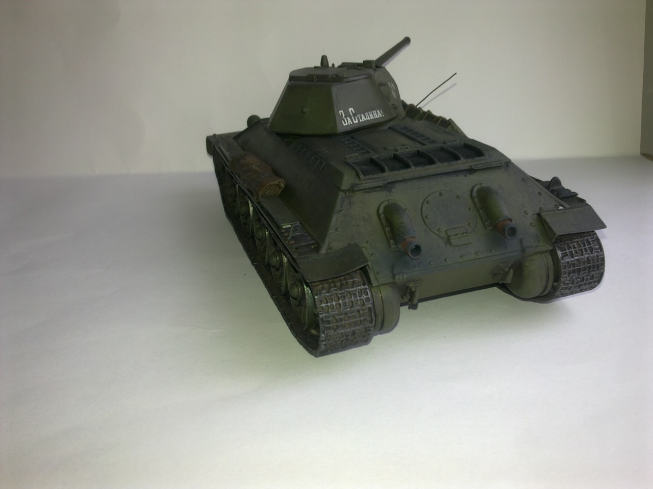 Привет всем!Представляю свою вторую модель.Собрана с дополнениями:трос и антенна проволка,пулемёт игла,сетка движка от чайного пакетика.Одна выхлопная труба заменена самоделом оригинал был потерян во время сборки!Окрас:грунт автомобильный,краска акрил "звезда"смывка гуашь,лак матовый.Модель красилась кистью и губкой!В покраске не силён,сильно не пенайте!!!