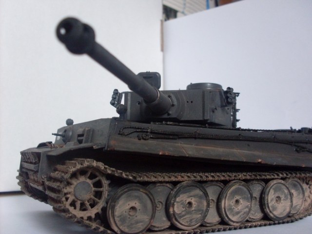 Модель смотрится неплохо. Мааааленькое замечание-мне кажется грязь на катках не должна иметь такую четкую направленность, лучше, если наносить ее хаотично! А так все очень даже хорошо! Успехов в будущем!