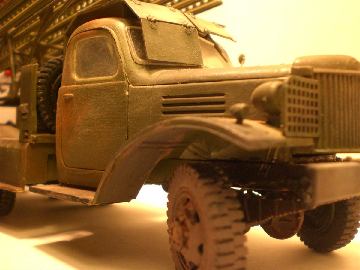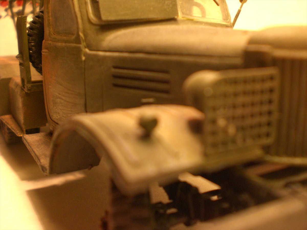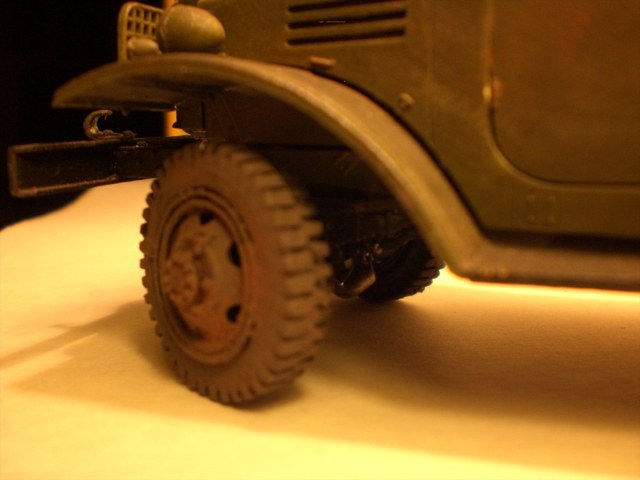 Матчасть этого кита хромает... она хорошая, но почему то хромает(С) :-) Советую хотя бы решетки фар заменить на самодельные из проволоки, вид очень измениться к лучшему. И обратите внимание на решетку радиатора, она не должна так высоко быть!!!!Читайте внимательней инструкцию, но не ограничивайтесь только ей, хорошо если в своей работе вы используете реальные фото модели, или чертежи- что особенно отлично :-) Немного не понял места ржавчины, вряд ли она там была, и не очень понравились мелкие царапины на правой двери. Очень просится смывка и маслом бы неплохо с ней(моделью) поработать, чтобы не был таким однородным цвет. А в целом сборка аккуратна, окрас тоже. Удачи в дальнейшем, дерзайте, все получится.