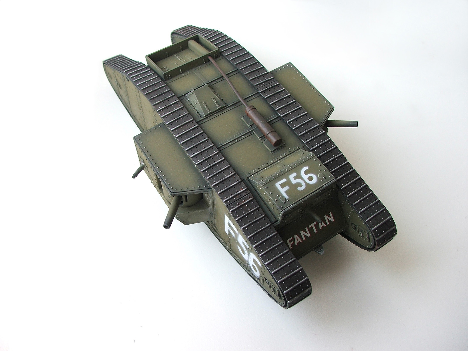 с бортовым номером косяк с трафаретом. лучше бы вы вручную кистью работали. было бы реалистичнее, хотя... с учетом стиля исполнения "полочной модели", так тоже сойдет. ИМХО, модели у вас красивые, но слишком игрушечно-однообразные. А с танком первой мировой оттянуться в плане тонировки можно по полной!))))