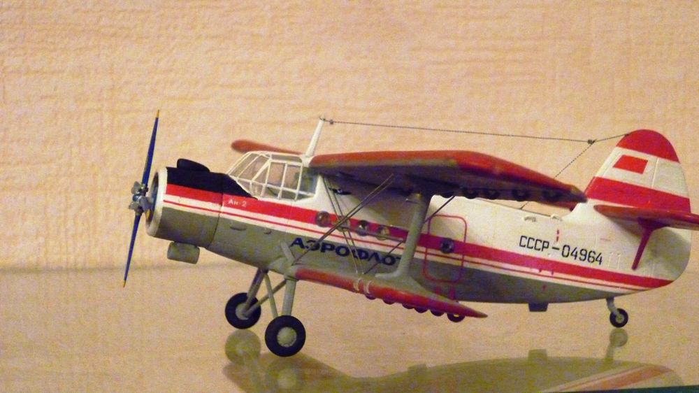 Сергей, Ан-2 от Моделиста - это перепаковка Трумпа, а он делает Ан-2 китайский. Нужно было хотя бы заменить блистеры иллюминаторами, это заметно и портит картину. Красная окраска более характерна для полярных самолетов, тут логичнее были бы лыжи. Сборка и окраска вроде неплохи, но фотки маловаты. Надпись AEROFLOT выглядит странно.