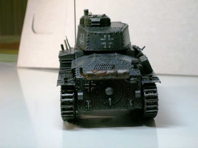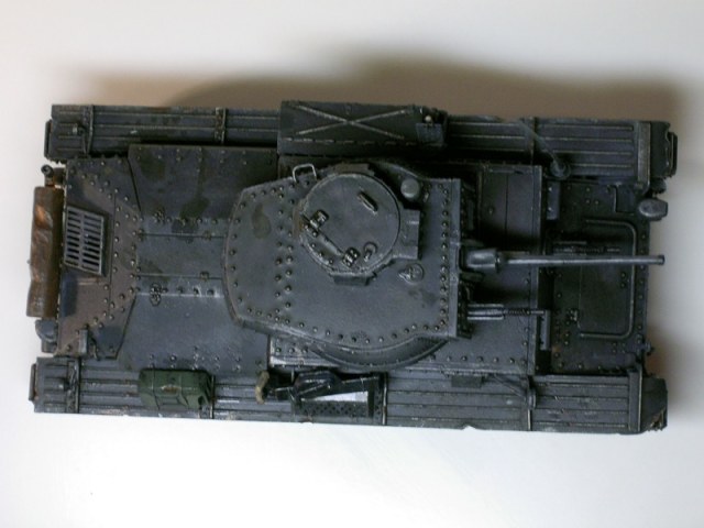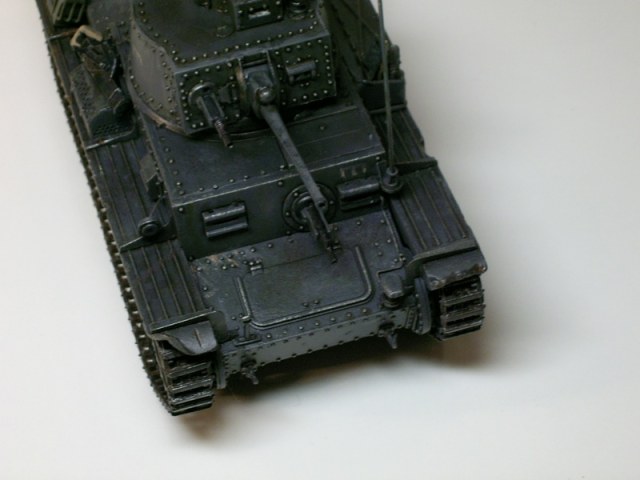 Вобще, Саш, Ваша модель неплоха. Чего стоит только сама архитектура этого танка. Люди, которые вобще не разбираются в БТТ, представляют себе танки тех времен (всех государств) именно в виде такого, ну, что ли "архетипа". Тут, мол, и гора заклёпок, и "колёса" большие и т.п. Машина!