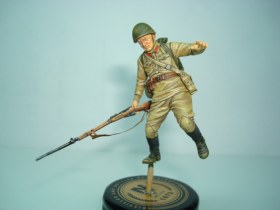 Всем привет!Выставляю очередного бойца от MB.Краска акрил от "Звезда",винтовочный ремень сигаретная фольга.Подиум временный....