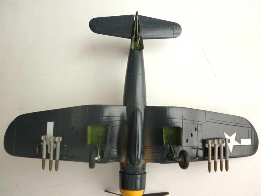 Добрый день , коллеги. Предлагаю вашему вниманию модель производителя, довольно редко встречающущегося на сайте . Модель собрана лет 12 назад из набора фирмы Тесторс , окрашена его же красками серии Федерал Стандарт. Декали - великолепнее я не встречал. Тонкие и прочные. Сама по себе модель - сочетание дровянистости и внутреннего кроя. Двигатель - хуже чем у НОВО - заменил на Шмеровский. От летчика была только голова - совсем как в НОВОвском СИ Хауке. На благо - чертежи были. Сделаны ниши шасси ,интерьер кабины, иглой по чертежам сделана клепка, выдавлен новый фонарь , переделаны бомбы. Модель представляет собой самолет с авианосца "Бон Омм Ричард".