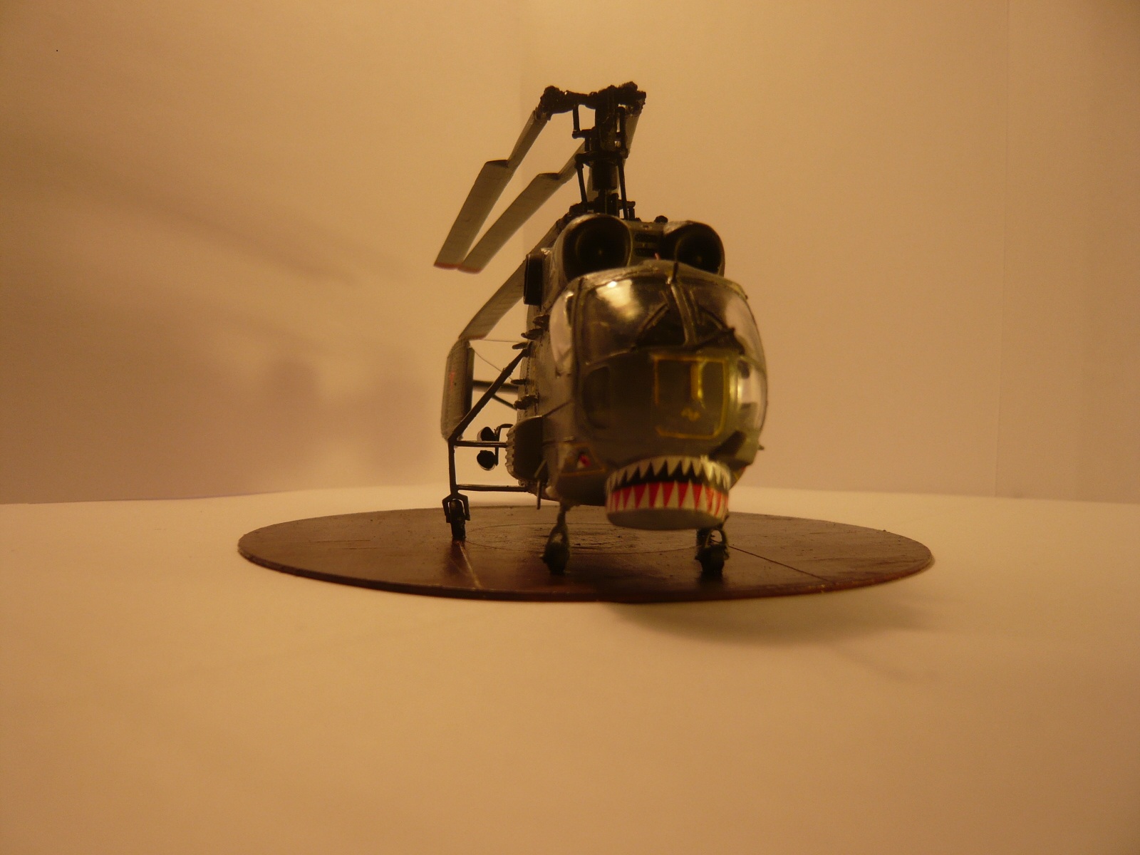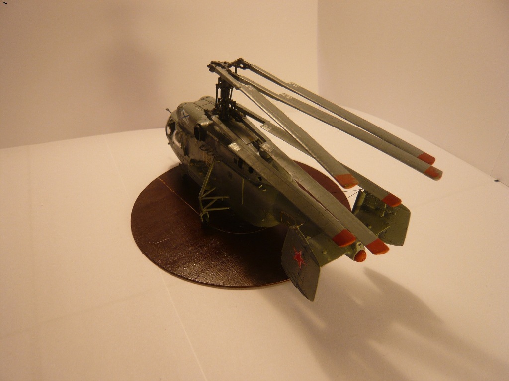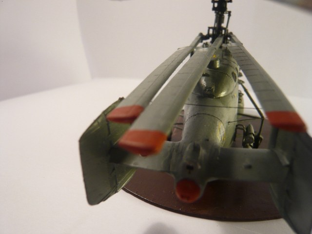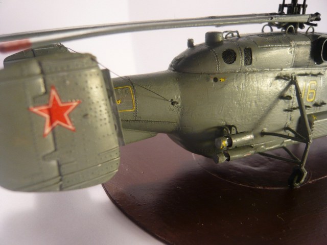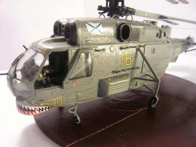Представляю вам свою третью модель. Сборка почти из коробки, добавлены лишь ручки по бокам и сверху модели, антенна, самодельные ОМАб-ы, складные лопасти. Пришлось переделывать передние стойки, так как родные я потерял. Красил смесью Tamiya+Zvezda, декали от Бегемота, но техничка от другого вертолёта. Подставку пришлось делать из-за того, что после складывания лопастей, он начал неминуемо падать на хвост, а сверлить отверстие для груза я побоялся.