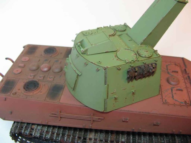 этот танк не существовал в реальности,был только на чертежах, а цвета отличаются потому как по задумке корпус прототип а башенка уже серийная,в конце войны времени на покраску не было...