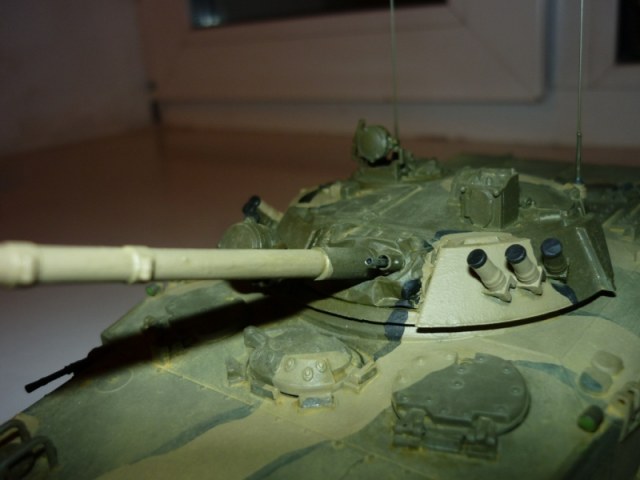 Модель была собрана без особых нареканий, шпатлёвка использовалась только при стыковке верха и низа.. интерьером особо не увлекался, но всё собрал и покрасил.. снаружи окрасил оливковым звездовским акрилом (кисть, спонжик), пятна деф.рисунка - немецко-желт оливковый звездовский акрил (кистью) и черная подводка (зв.акр. - кисть).