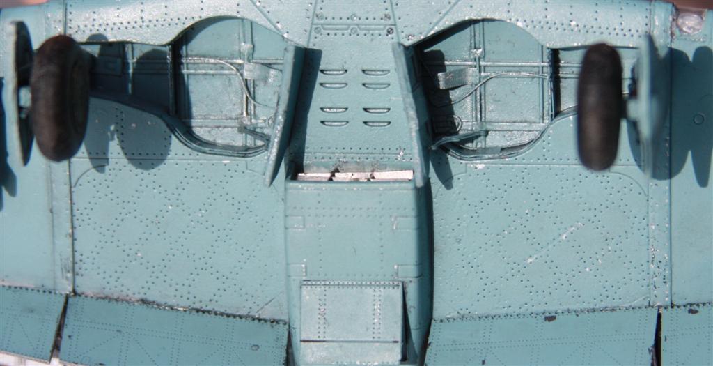Нос фюзеляжа, упомянутый выше, не сильно бросается в глаза, а вот достаточно толстые для 48-го масштаба створки шасси смазывают впечатление. Андрей (camcord) - мне внутренняя часть щитков показалась серой, как надо (А14), а вот ниши шасси тоже должны быть серыми. Про фонарь сказали. Ещё что показалось - поправьте меня, если не так - стойки шасси немного завалены назад. Виден шов на пневматиках. Насчёт жёлтого кока - действительно спорный момент, но тут уже ловить нечего, за давностью лет примем жёлтый цвет за данность.