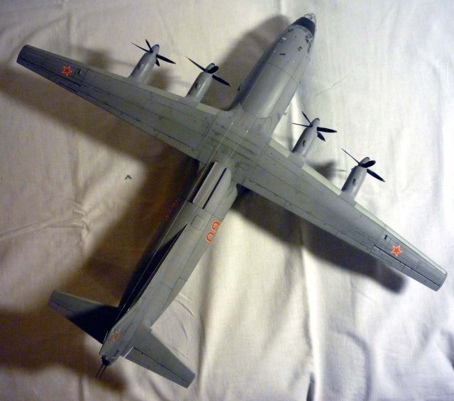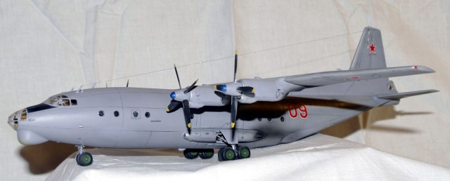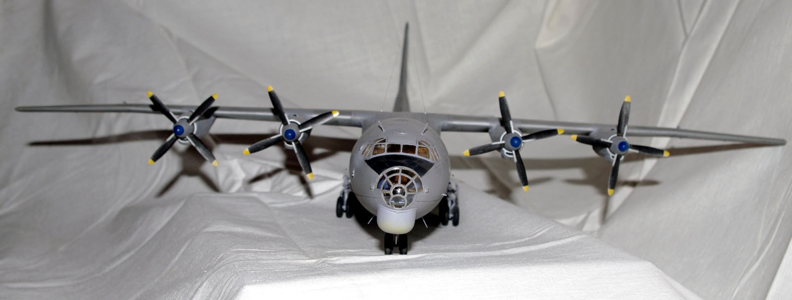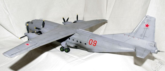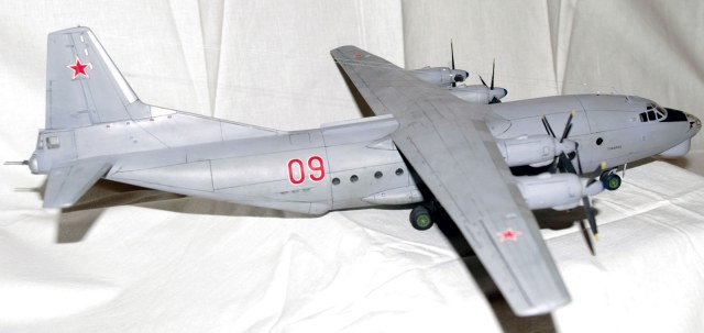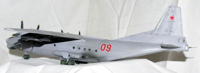 Кстати, смотрю на модели Ан-12 в серой ливрее, и вот что интересно - пока не попадались мне модели с аэрофлотовскими обозначениями, нанесенными поверх закрашенных звезд. Примечательность в том, что закрашенные звезды немного "вылезали" в виде пятен. И было бы очень интересно, собрать и покрасить модель именно в таком ключе!