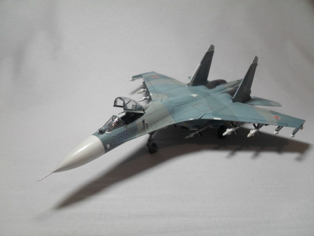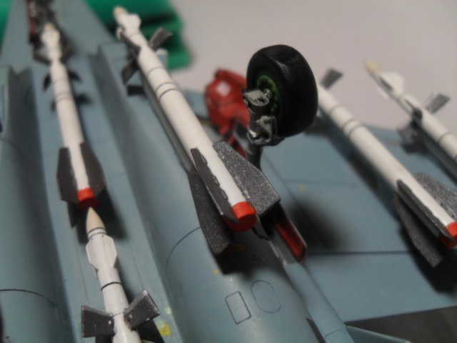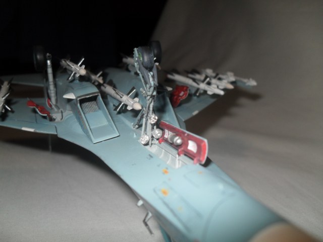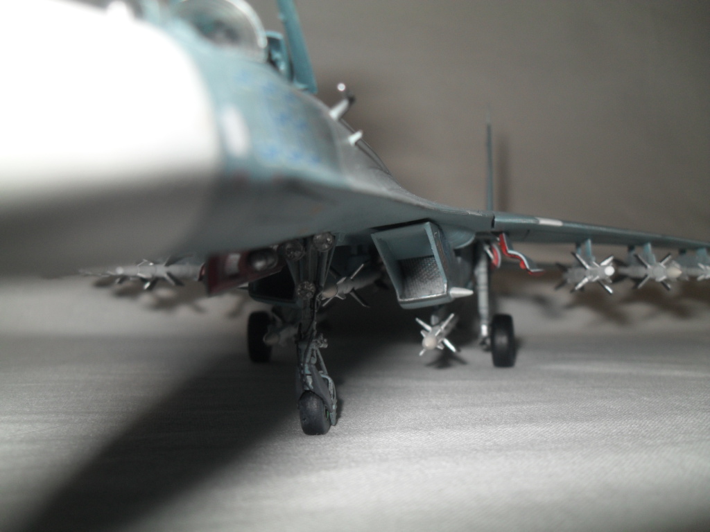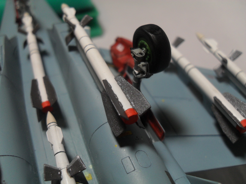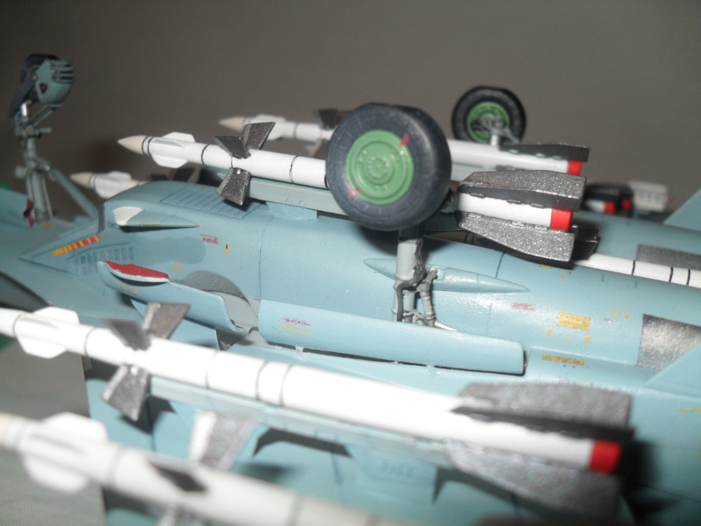 Стремление повесить весь комплект вооружения-не всегда выйгрышное,самолёт стал как ёлка с игрушками,к тому же ракеты отлиты всёж грубовато,ИМХО-лучше было бы изготовить на несколько ракет "оперение" из пивалюминия или фольги.