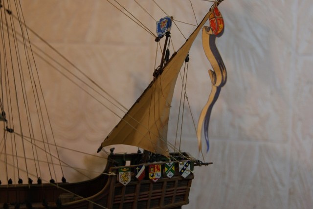 Спасибо. Паруса крашенные в несколько оттенков. Гербы это родные декали.