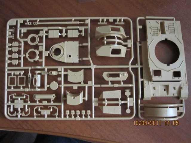 это просто сфотано так, что кажутся они серыми, они на самом деле такого же песочного цвета, вглядись)). Я сначала подумал, шо загрунтованы... От себя добавлю что модель явный даунскейл из 35го масштаба, инструкция так вообще копия.